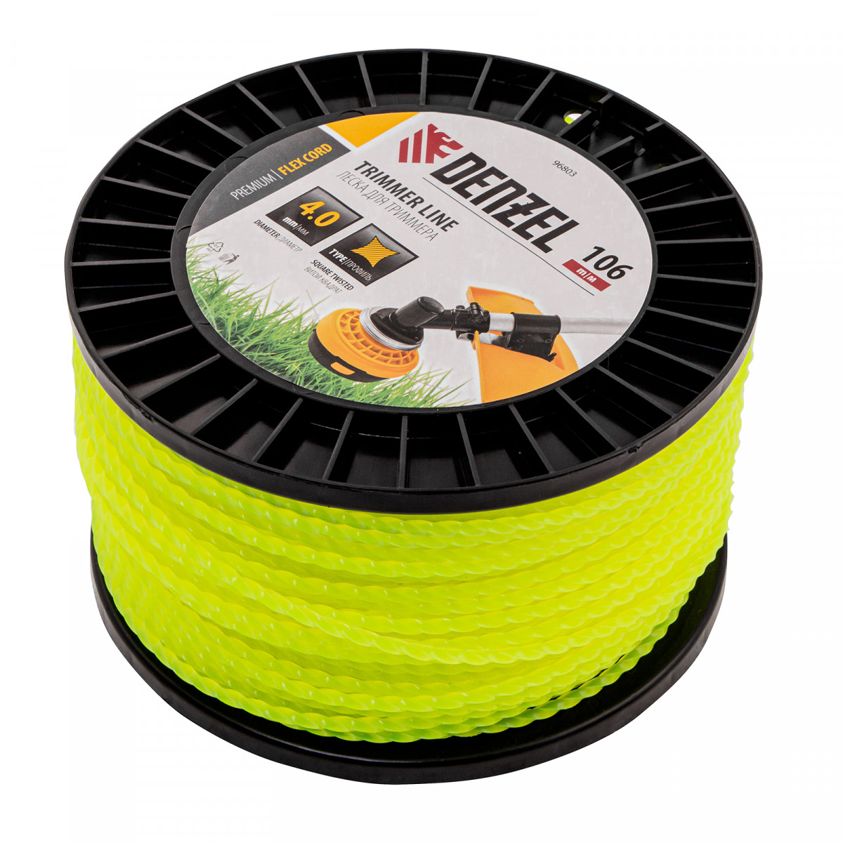 Леска для триммера витой квадрат, 4,0мм х 106м, на DIN катушке FLEX CORD Denzel