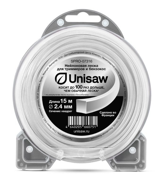 Леска триммерная 2.4мм 15м квадрат Unisaw