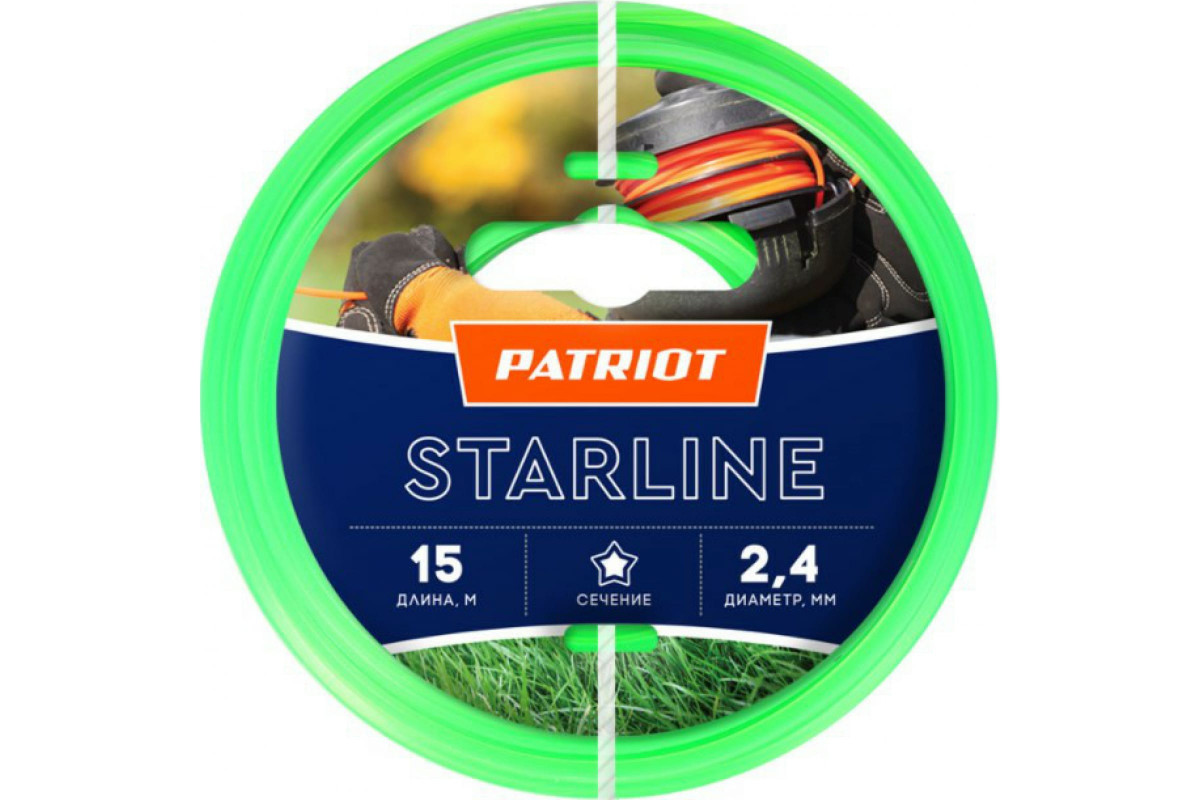 Зеленый цвет лески делает ее хорошо видимой на газоне, что позволяет точно контролировать процесс стрижки. Звездообразное сечение лески обеспечивает отличное сцепление с растениями.