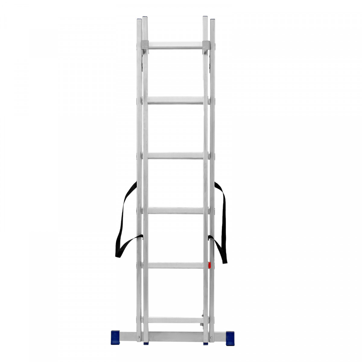 - 3 рабочих положения — стремянка, двухсторонняя стремянка, приставная лестница с одной или двумя секциями.
