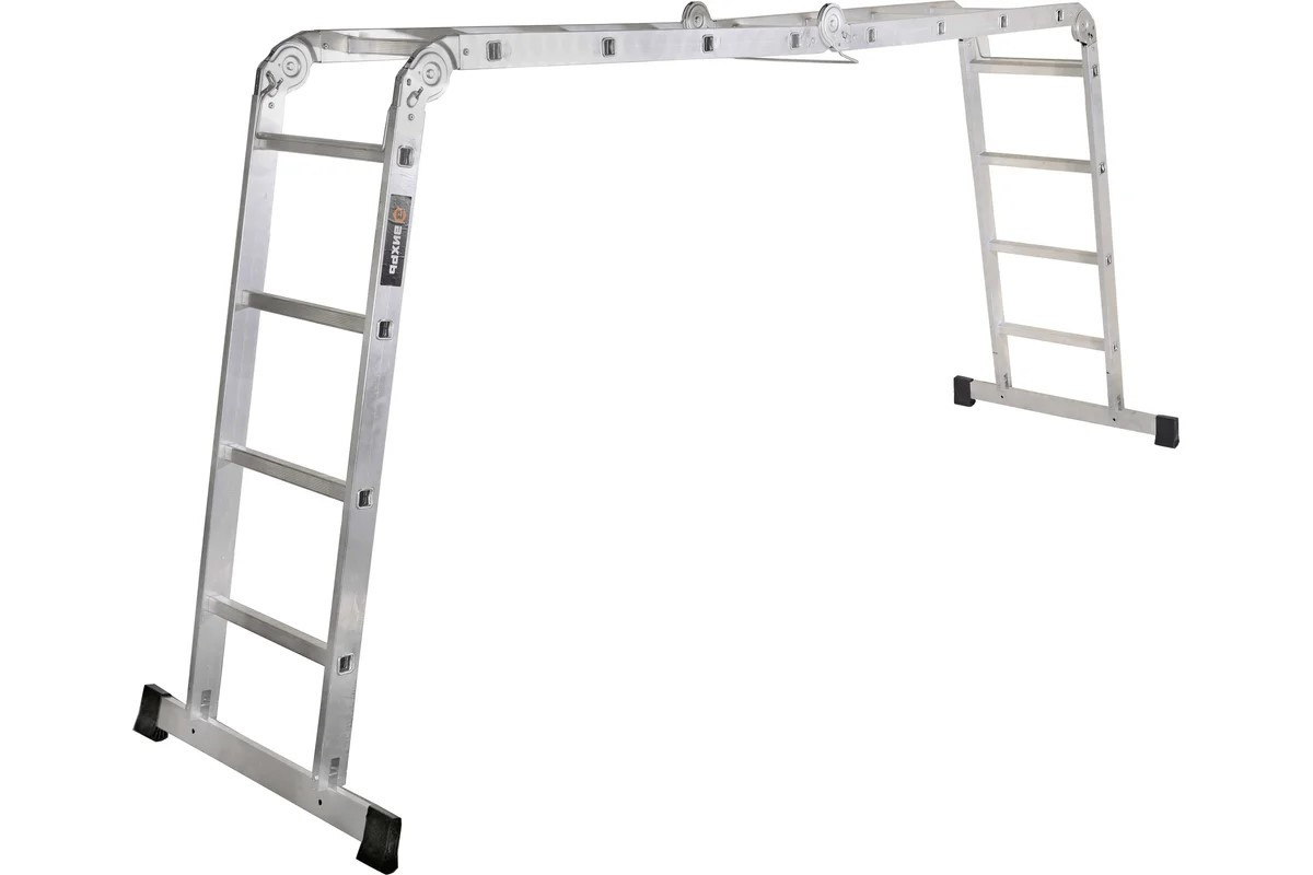 Четырехсекционная алюминиевая многофункциональная лестница-трансформер ВИХРЬ ЛТА 4х4 - это удобный и надежный инструмент для работы на высоте. Она состоит из четырех секций, которые можно свободно раскладывать и складывать в зависимости от задачи. Лестница-трансформер может использоваться как:приставная лестница,