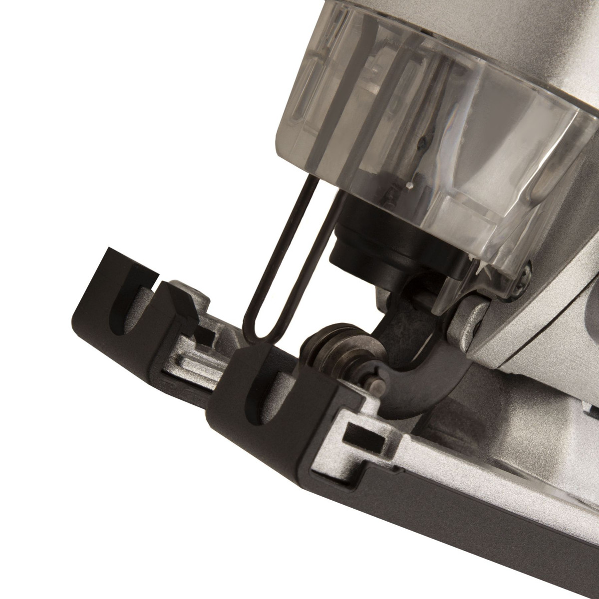 - Электронная регулировка частоты ходов — можно выбрать оптимальную скорость реза в зависимости от обрабатываемого материала.