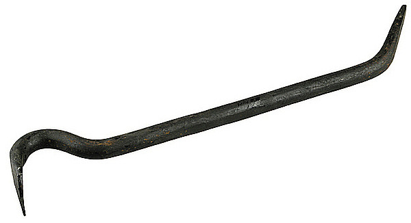 Гвоздодер изготовлен из арматурного прута. Сталь марки 20. Имеет загнутые на обоих концах инструмента рабочие профили: с клиновидной прорезью предназначен для удаления гвоздей разных размеров, цельный используется для демонтажа строительных материалов.
