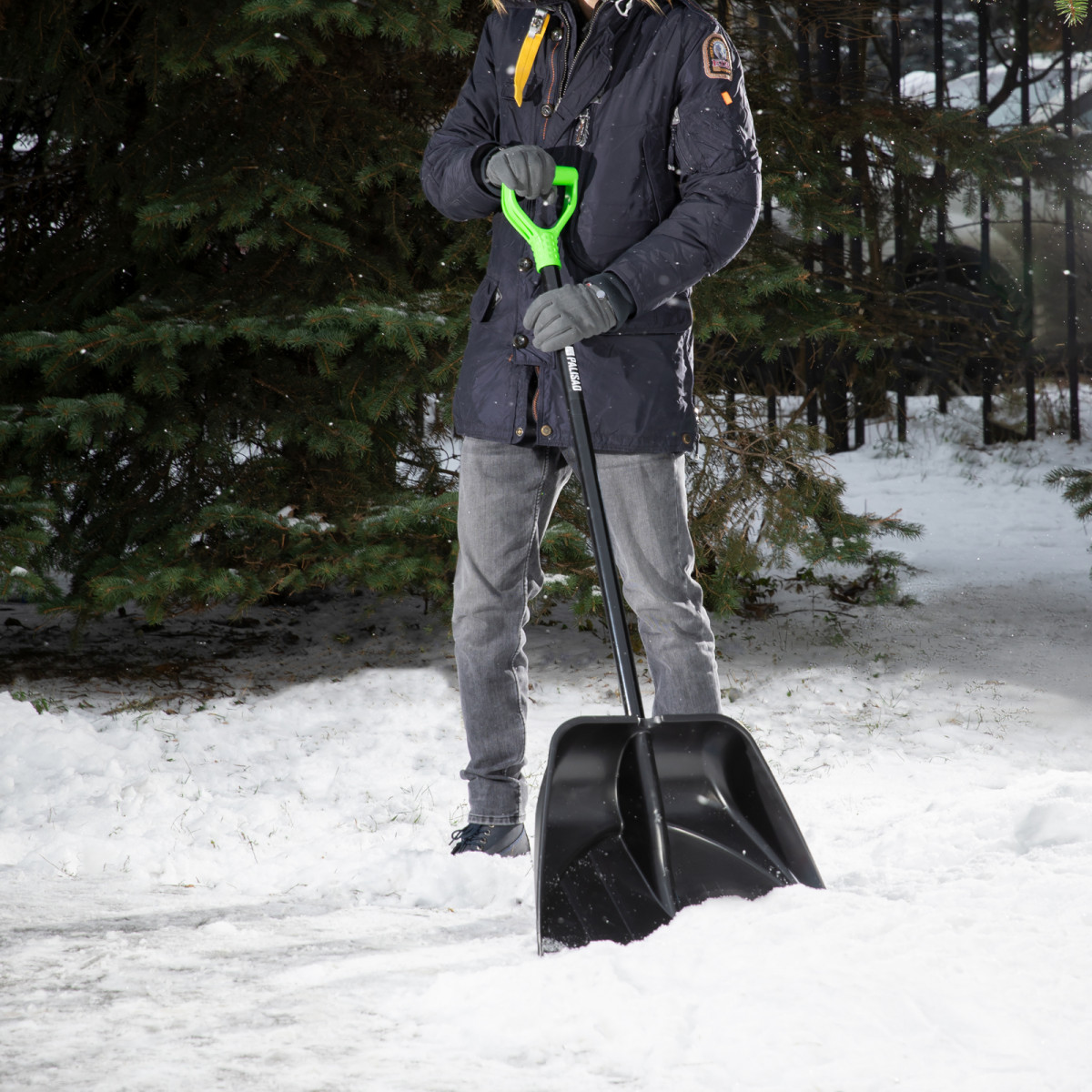 Пластиковая лопата для уборки снега Palisad PROFI 61607 с алюминиевым черенком, 550 х 415 х 1405 мм, используется для расчистки территории в зимний период. Благодаря алюминиевой накладке на кромке ковша инструмент эффективно справляется даже с плотным слежавшимся снегом и настом. Лопата весит всего 1,24 кг, поэтому с ней легко работать людям с разным уровнем подготовки. Инструмент пригодится при уборке придомовой территории, пространства перед гаражом или садового участка.