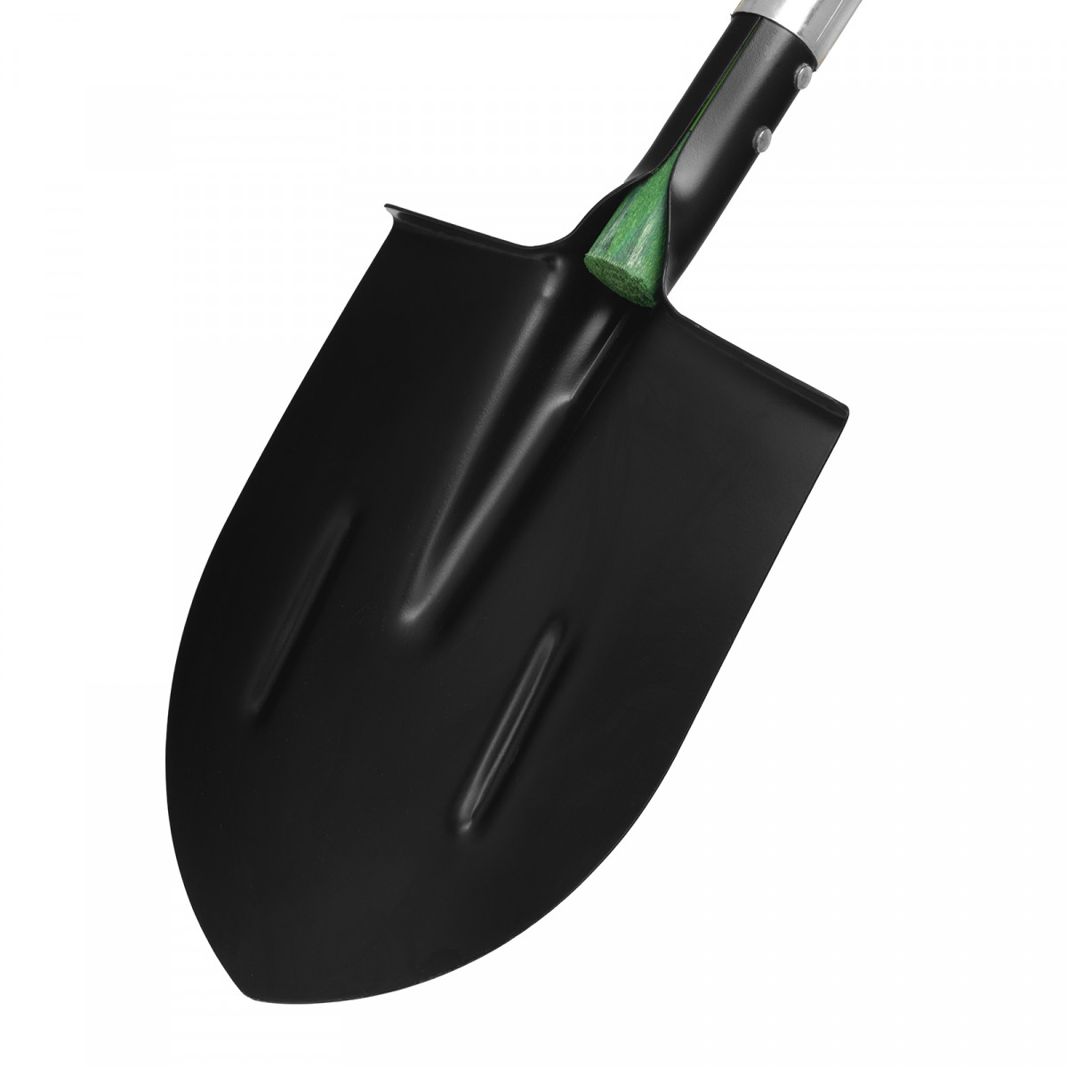 - Продуманная конструкция — фибергласовый черенок не утяжеляет лопату и не разрушается под действием ультрафиолета, а удлиненная цельновырубная тулейка предотвращает его излом.
