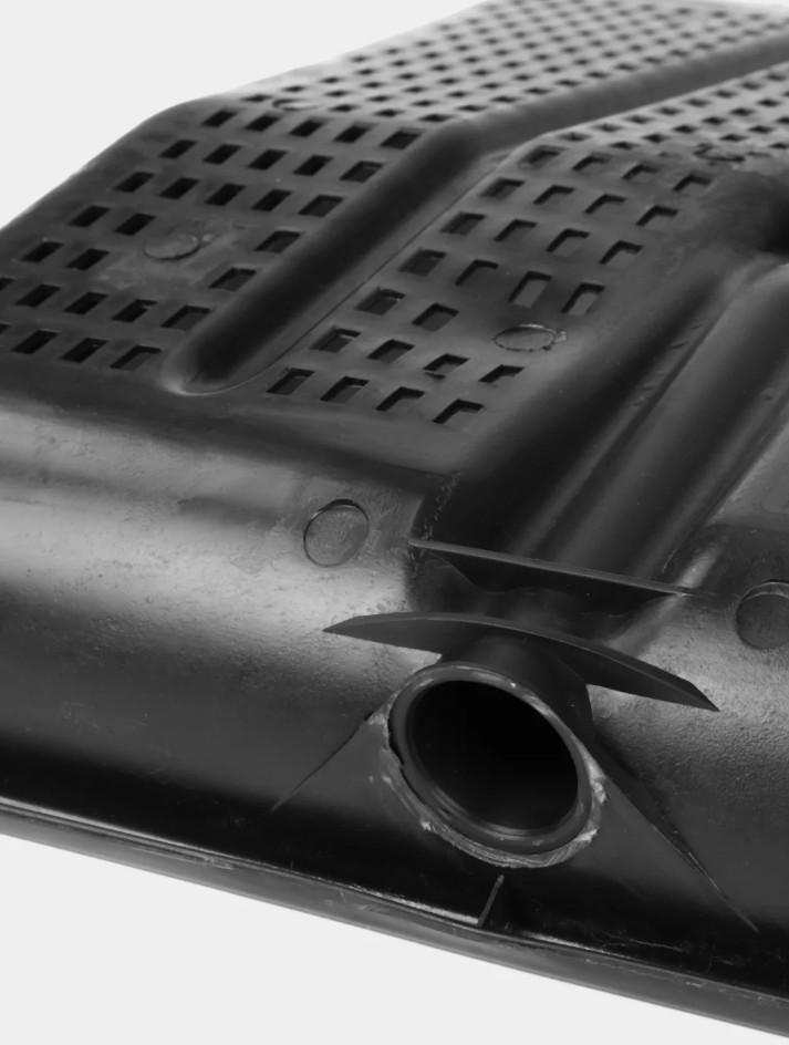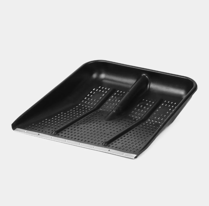 Лопата для снега пластмассовая 47х47см, без черенка, оцинкованная планка, на заклепках, с ребрами жесткости, перфорированная. Цвет черный. Лопата изготовлена из уникального сырья, которое держит форму и сохраняет свои функции при самых суровых условиях. Лопата выдерживает большие нагрузки, а перфорация снизит подъемный вес при работе.