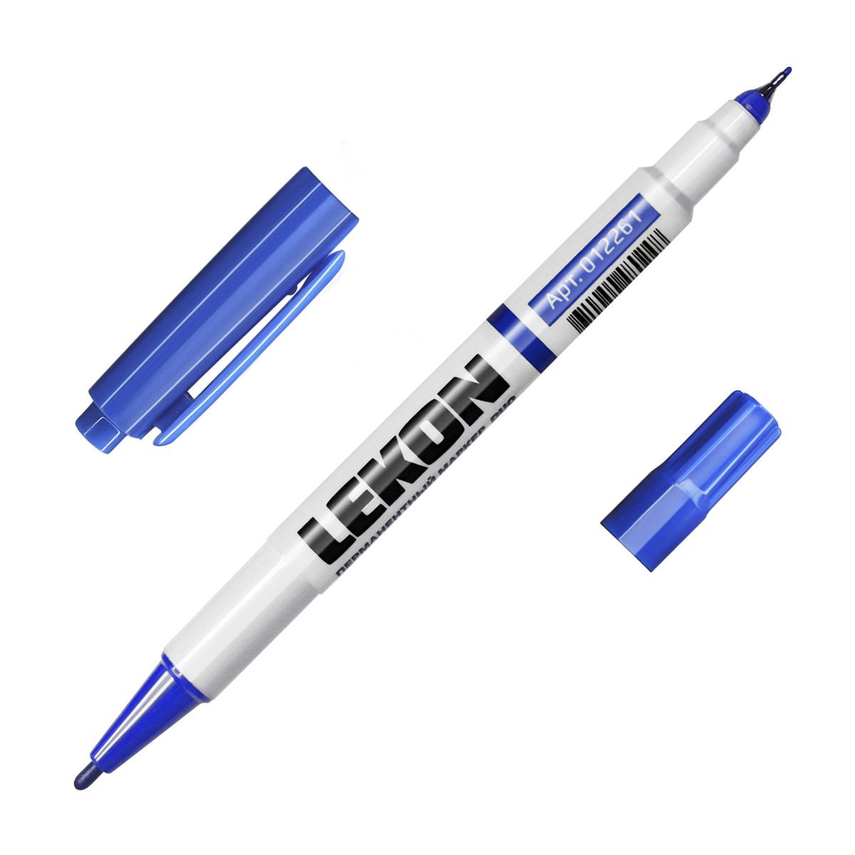 Маркер перманентный двухсторонний фетровый 0,5-1мм синий LEKON DUO