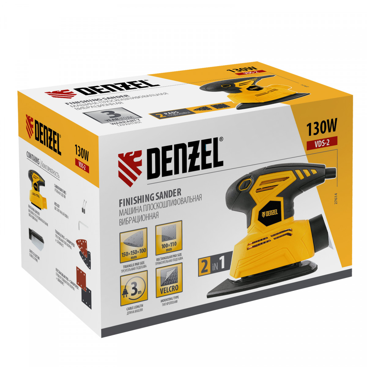Машина плоскошлифовальная вибрационная 2 в 1 VDS-2, 130 Вт, 14000 об/мин Denzel