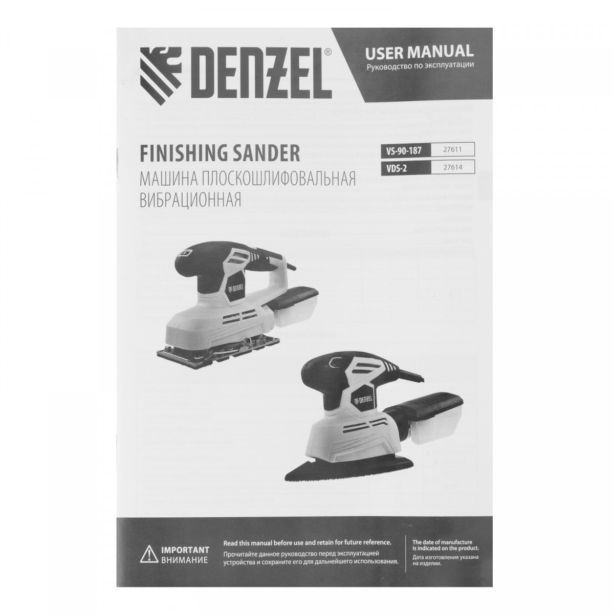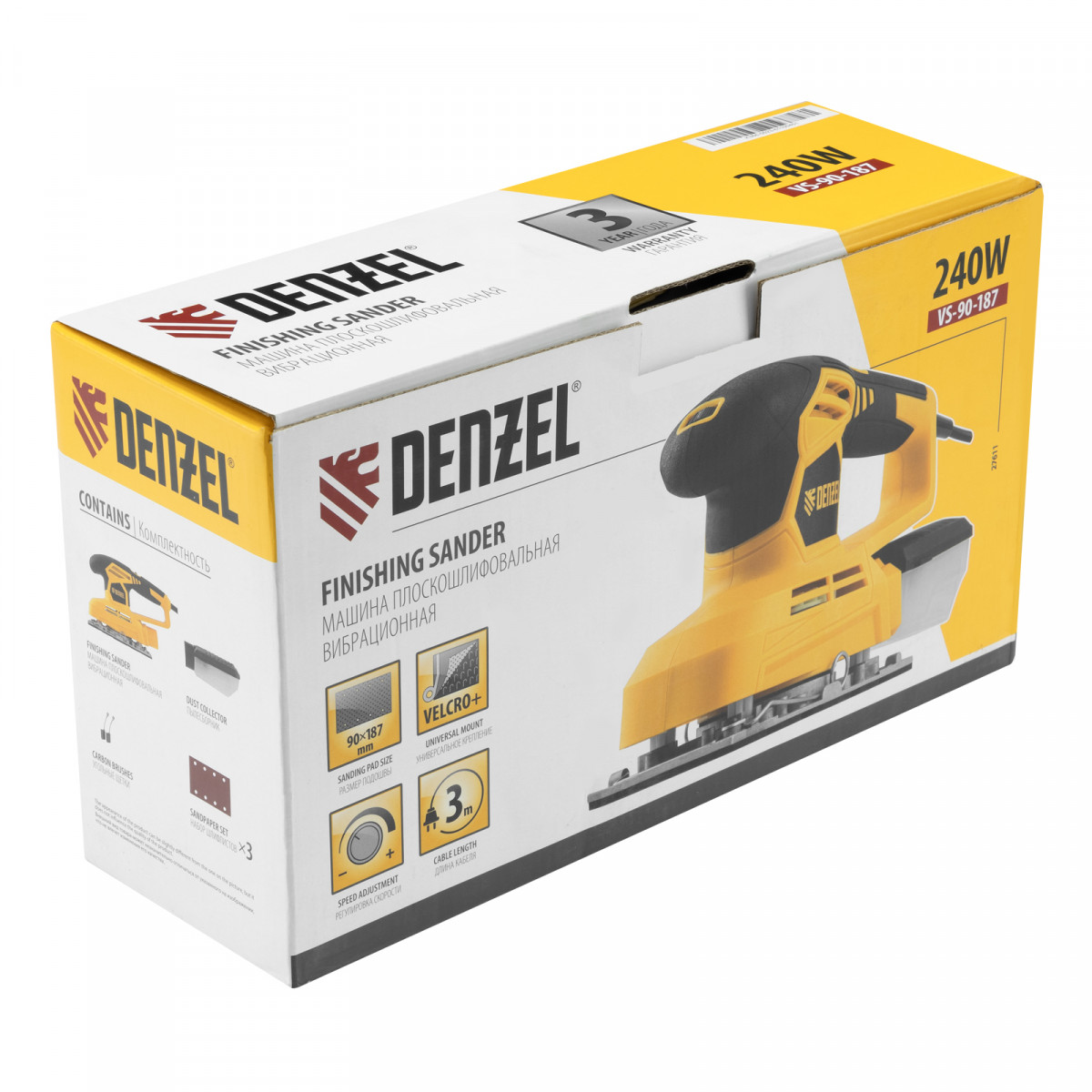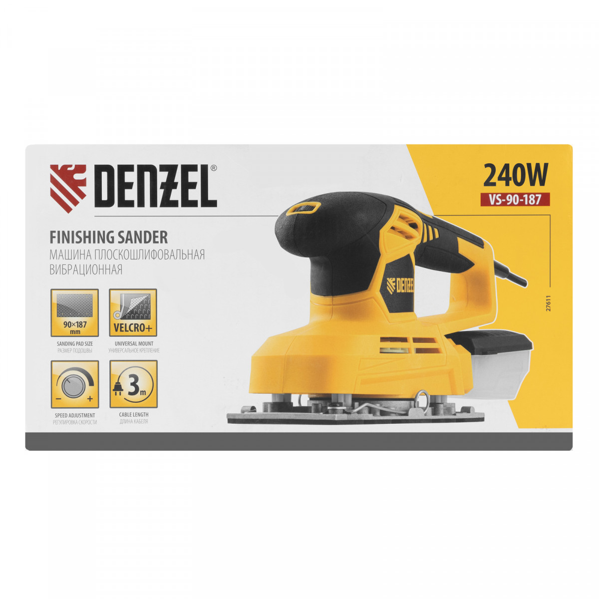 Машина плоскошлифовальная вибрационная VS-90-187, 240 Вт, 6000-11000 об/мин Denzel