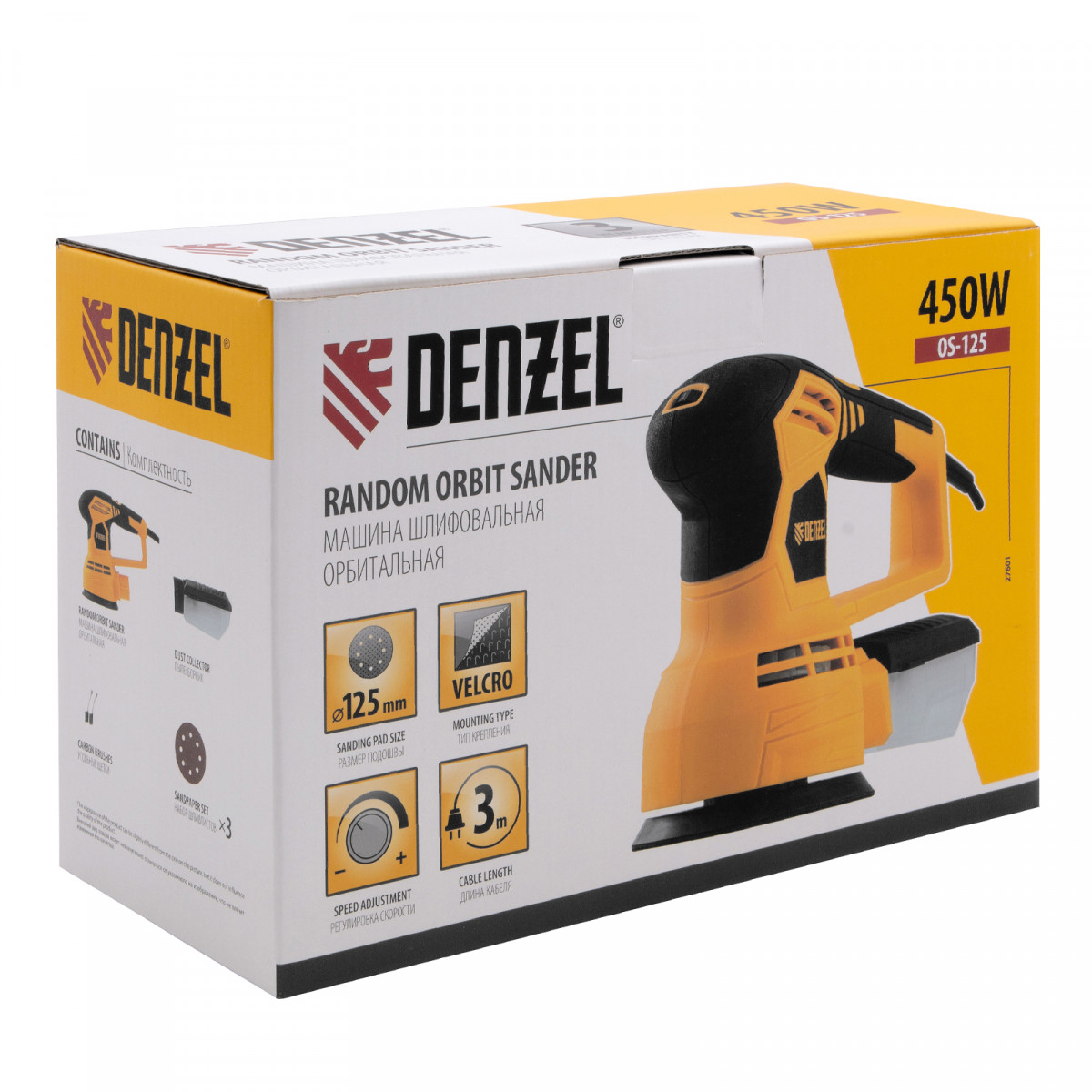 Машина шлифовальная эксцентриковая OS-125, 450 Вт, 6000-12000 об/мин Denzel