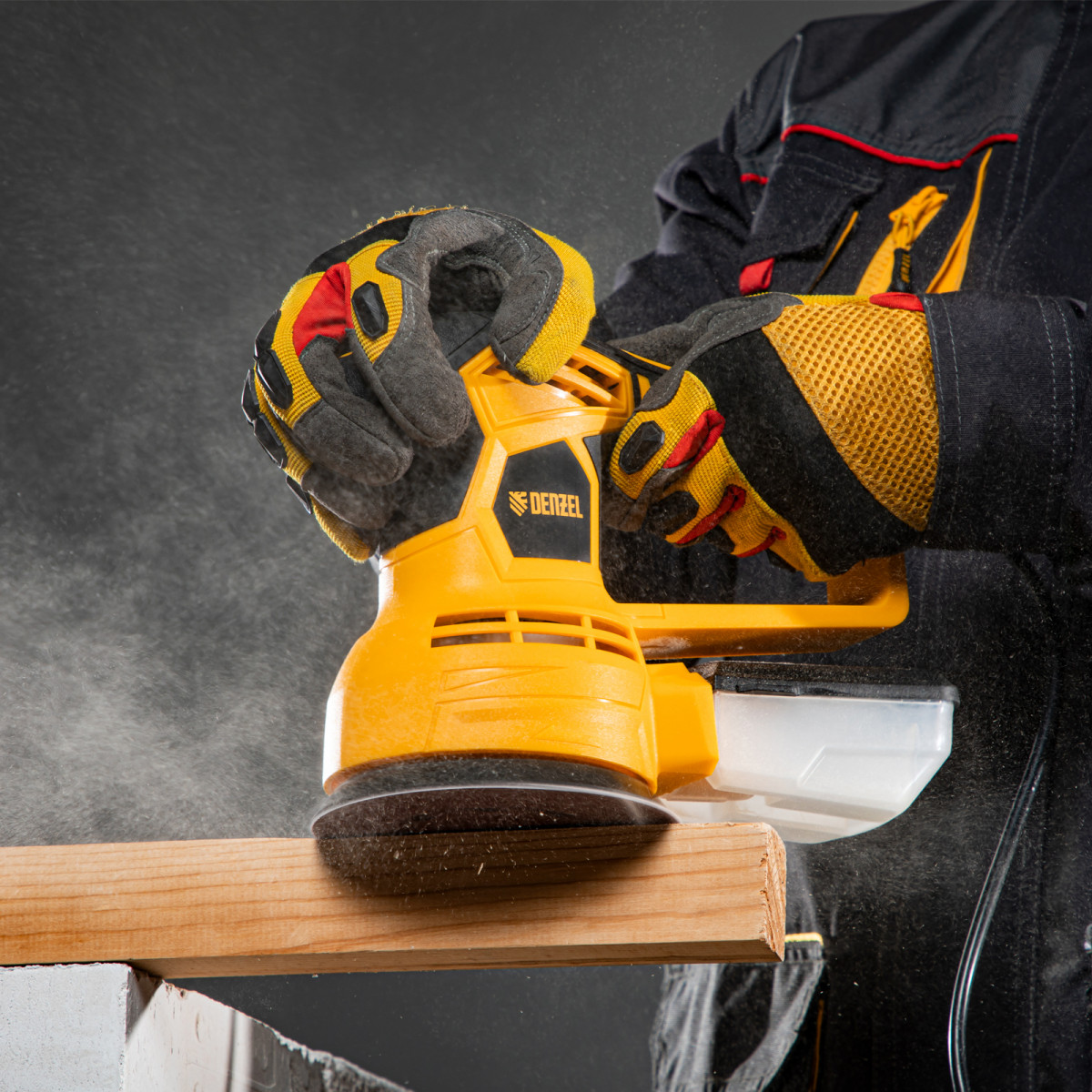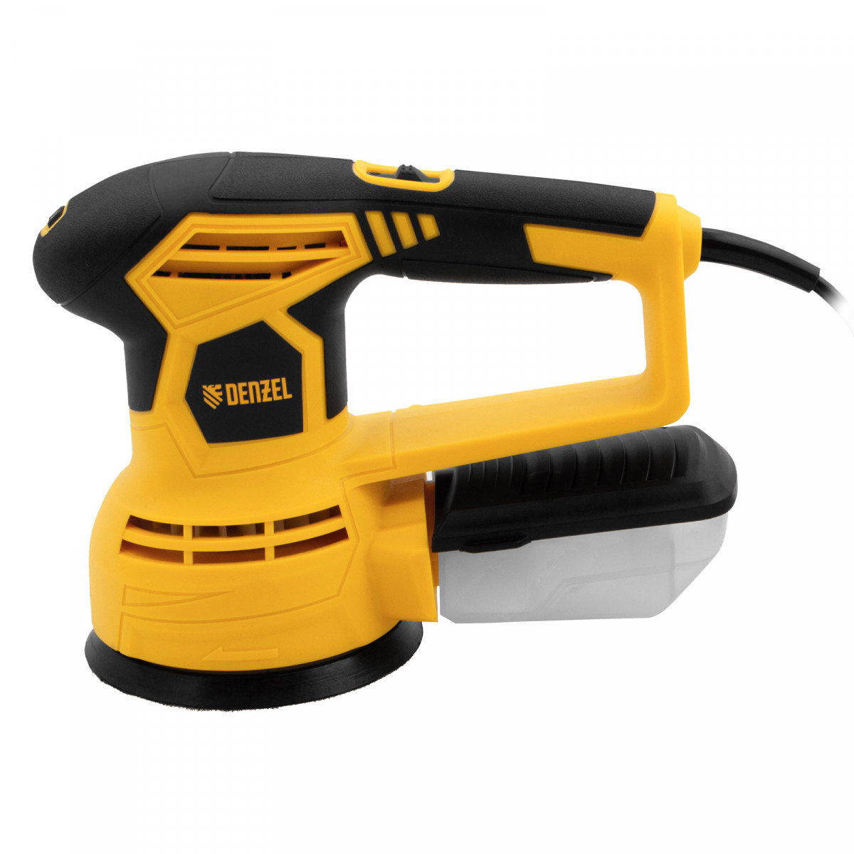 • Универсальный пылесборник — контейнер подходит для всех моделей шлифовальных машин Denzel.