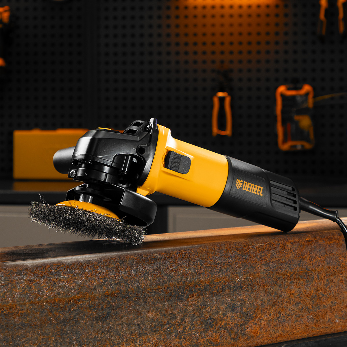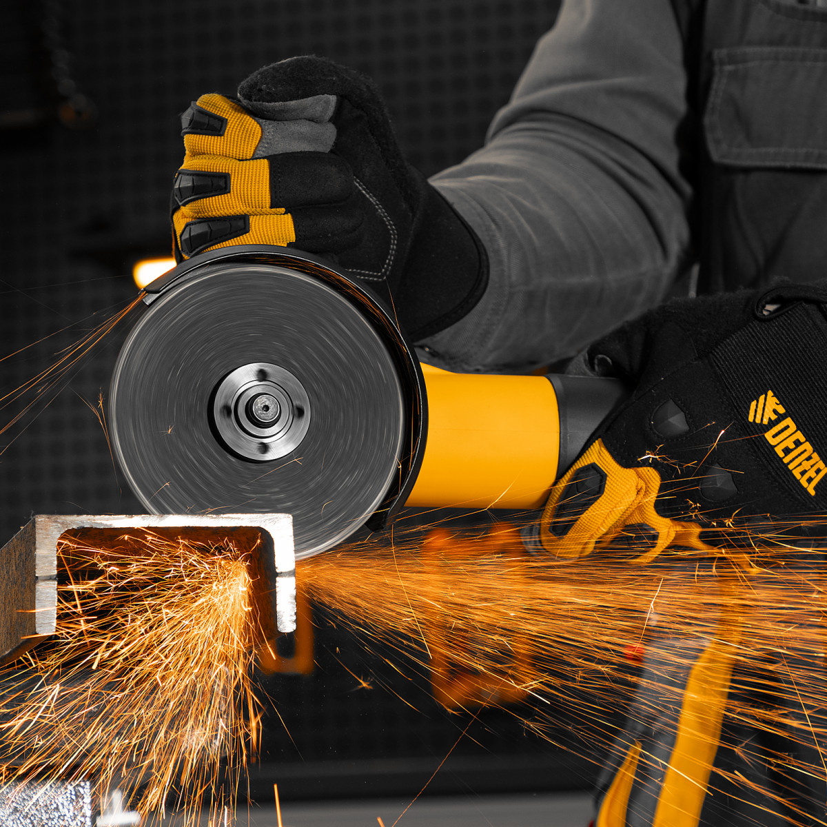 Угловая шлифовальная машина Denzel AG125-1100 26906 мощностью 1100 Вт совместима с оснасткой максимальным диаметром 125 мм, поддерживает частоту вращения шпинделя от 3000 до 11000 об/мин, благодаря чему эффективно справляется с обработкой и зачисткой поверхностей, а также резкой, шлифовкой металла толщиной до 35 мм и камня. Пригодится дома, в гараже и на даче.