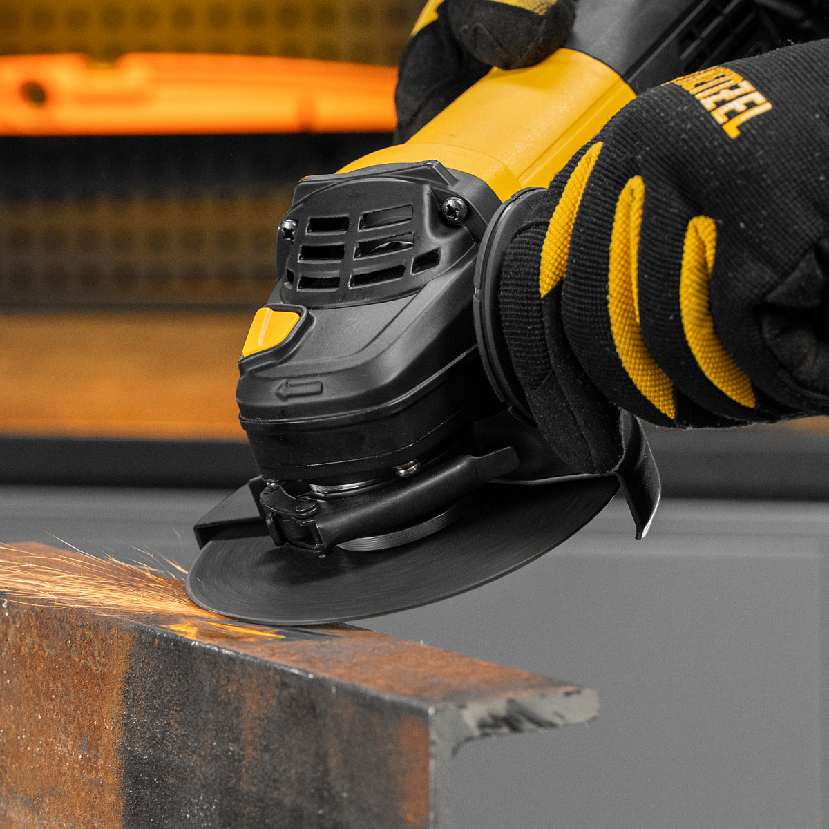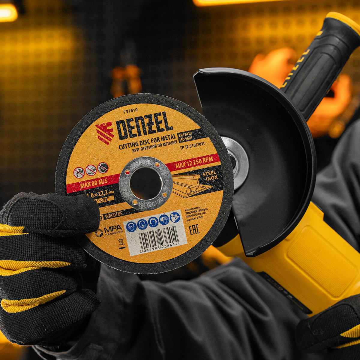 Угловая шлифовальная машина Denzel AG125-1500 26907 мощностью 1500 Вт совместима с оснасткой диаметром 125 мм, система электронной регулировки позволяет устанавливать оптимальную частоту вращения шпинделя в диапазоне 3000-11000 об/мин. Инструмент используется для резки и шлифовки различных материалов, а также при выполнении зачистных работ.