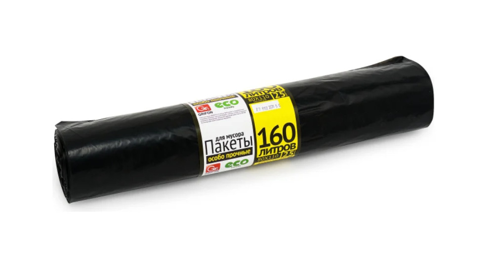 Мешки для мусора 160 л (40 мкм) GRIFON ПВД черные 25 шт