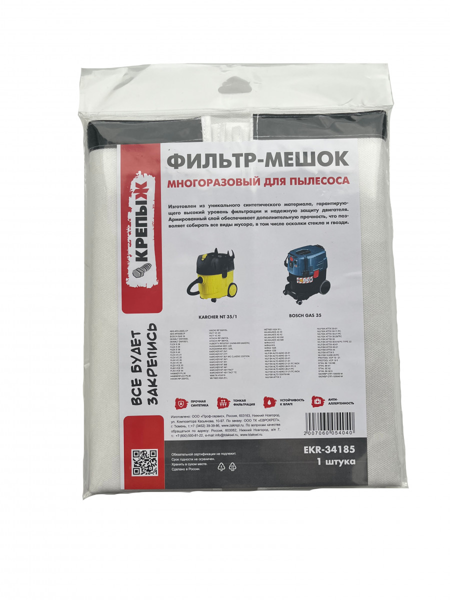 Мешок-пылесборник КРЕПЫЖ для пылесосов многоразовый синтетический EKR-34185 (до 36 л)