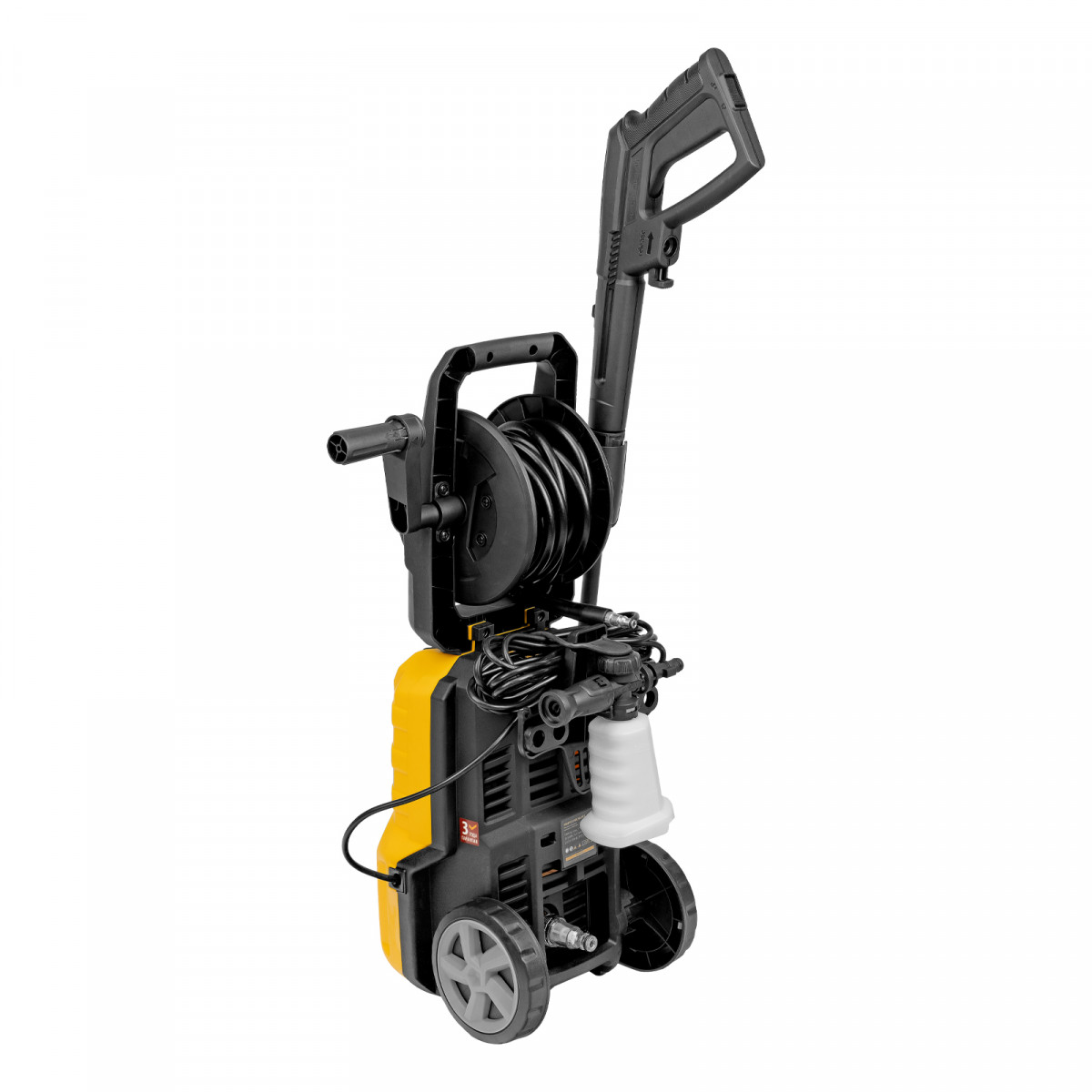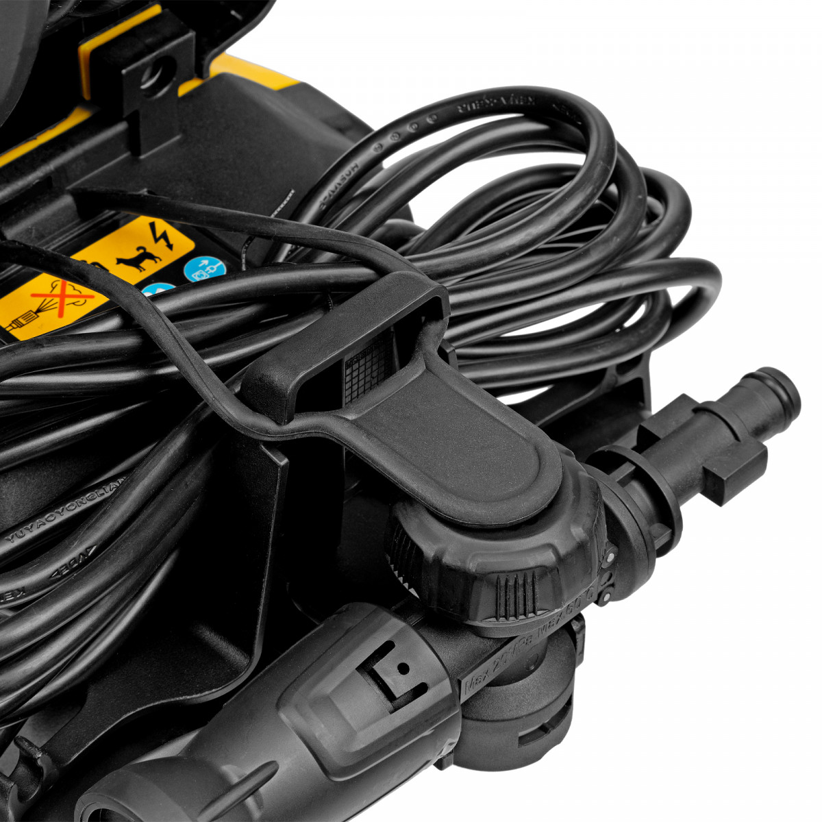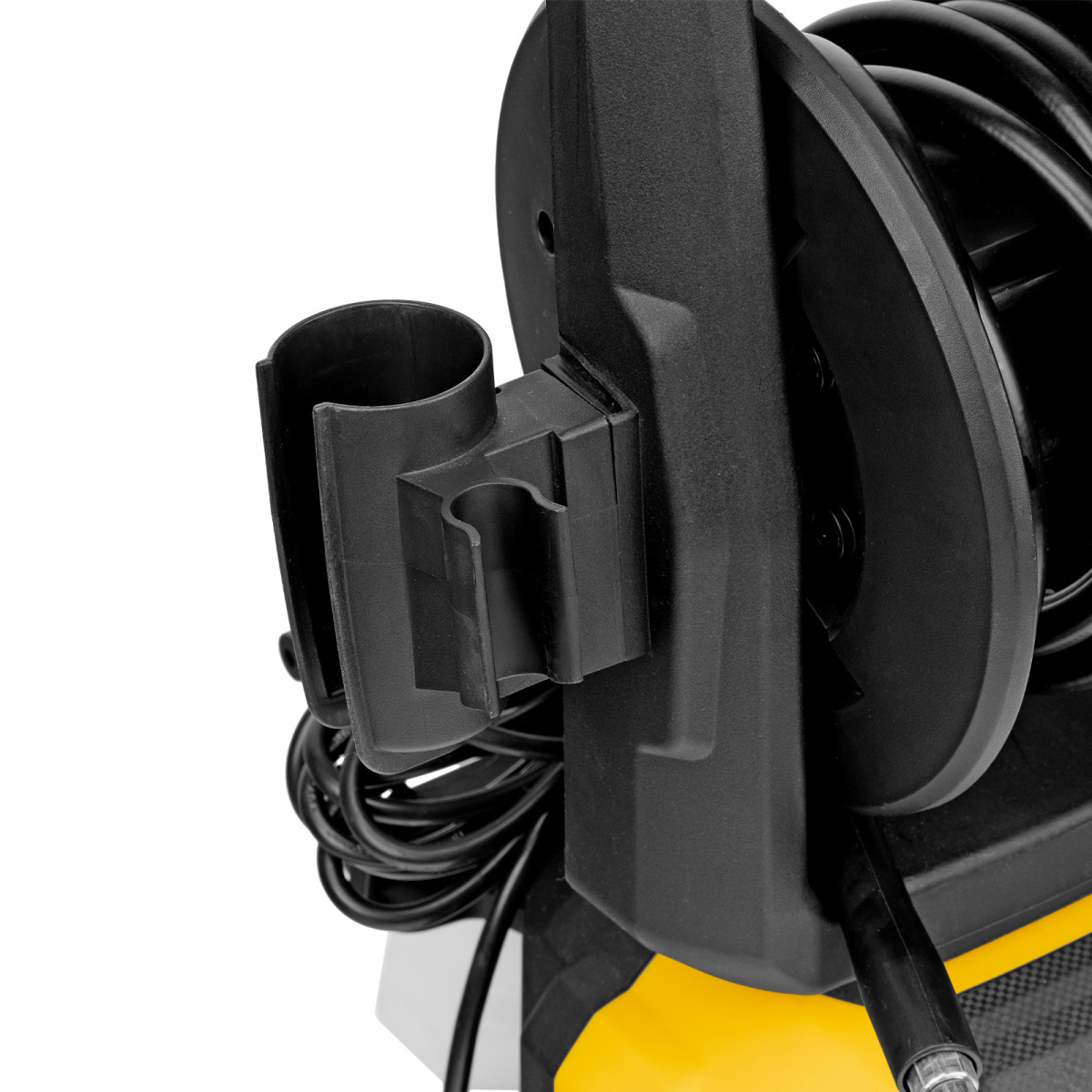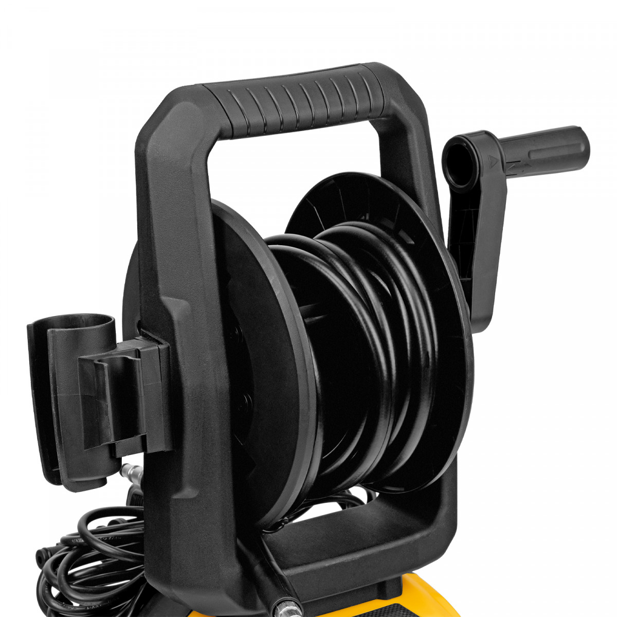 • Комфортная эксплуатация — барабан для шланга высокого давления упрощает работу, длина кабеля и шланга высокого давления составляет 5 м, что позволяет свободно передвигаться по участку.