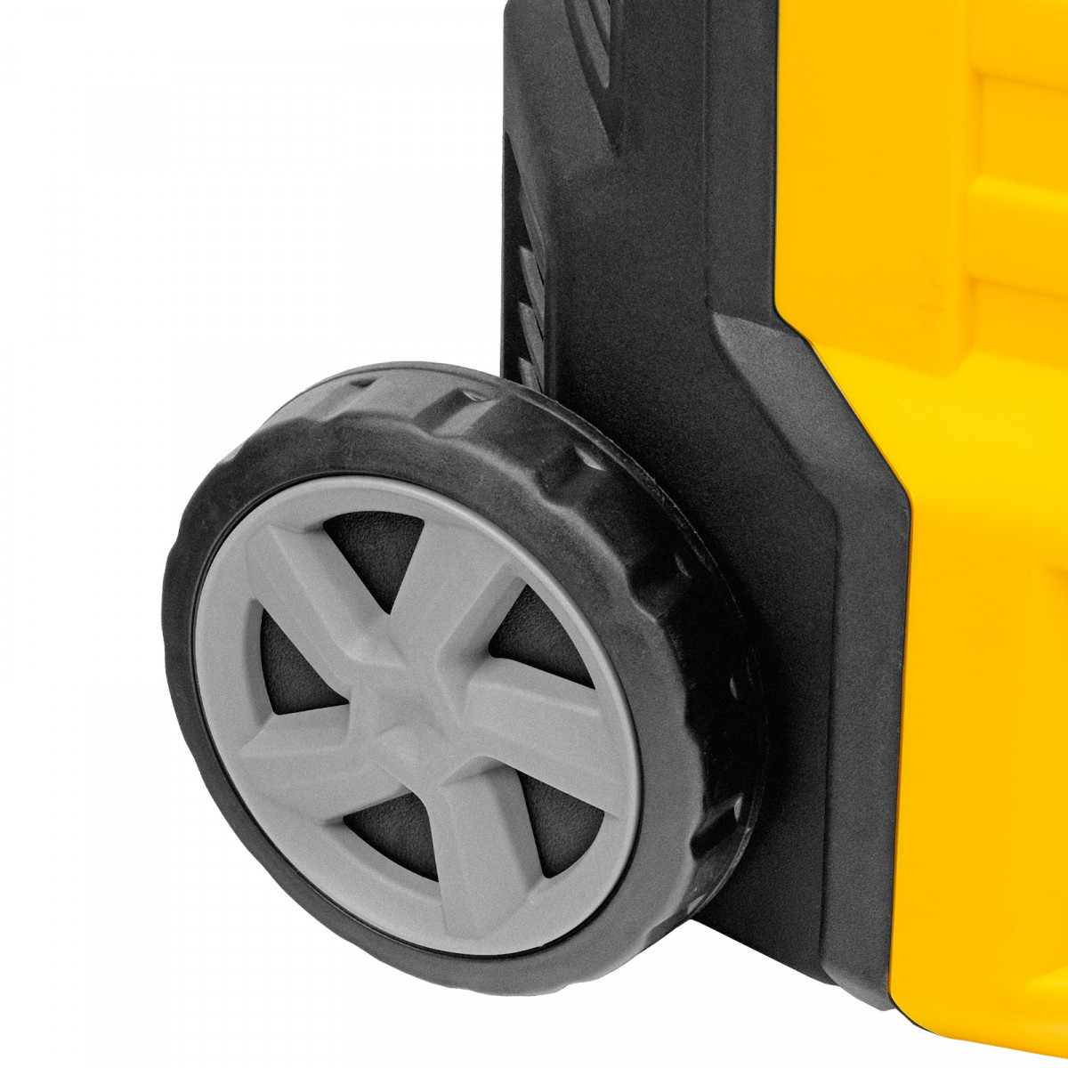 • Мобильность — благодаря рукоятке и колесам моечную машину удобно перемещать.