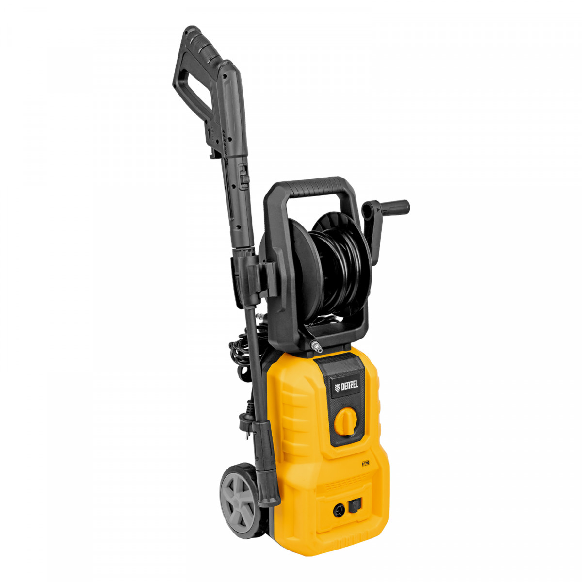 Моечная машина высокого давления Denzel R-170D 58263 с барабаном, мощностью 1800 Вт, поддерживает максимальное рабочее давление 170 бар и обеспечивает объем подачи воды 380 л/ч. Позволяет быстро и эффективно очистить садовый инвентарь, фасад дома, дорожку, отмыть автомобиль и т.д. Оснащена самовсасывающим насосом, поэтому может работать даже без подключения к водопроводу — подойдет любой резервуар или емкость с водой. Машина оптимальна для бытового использования.