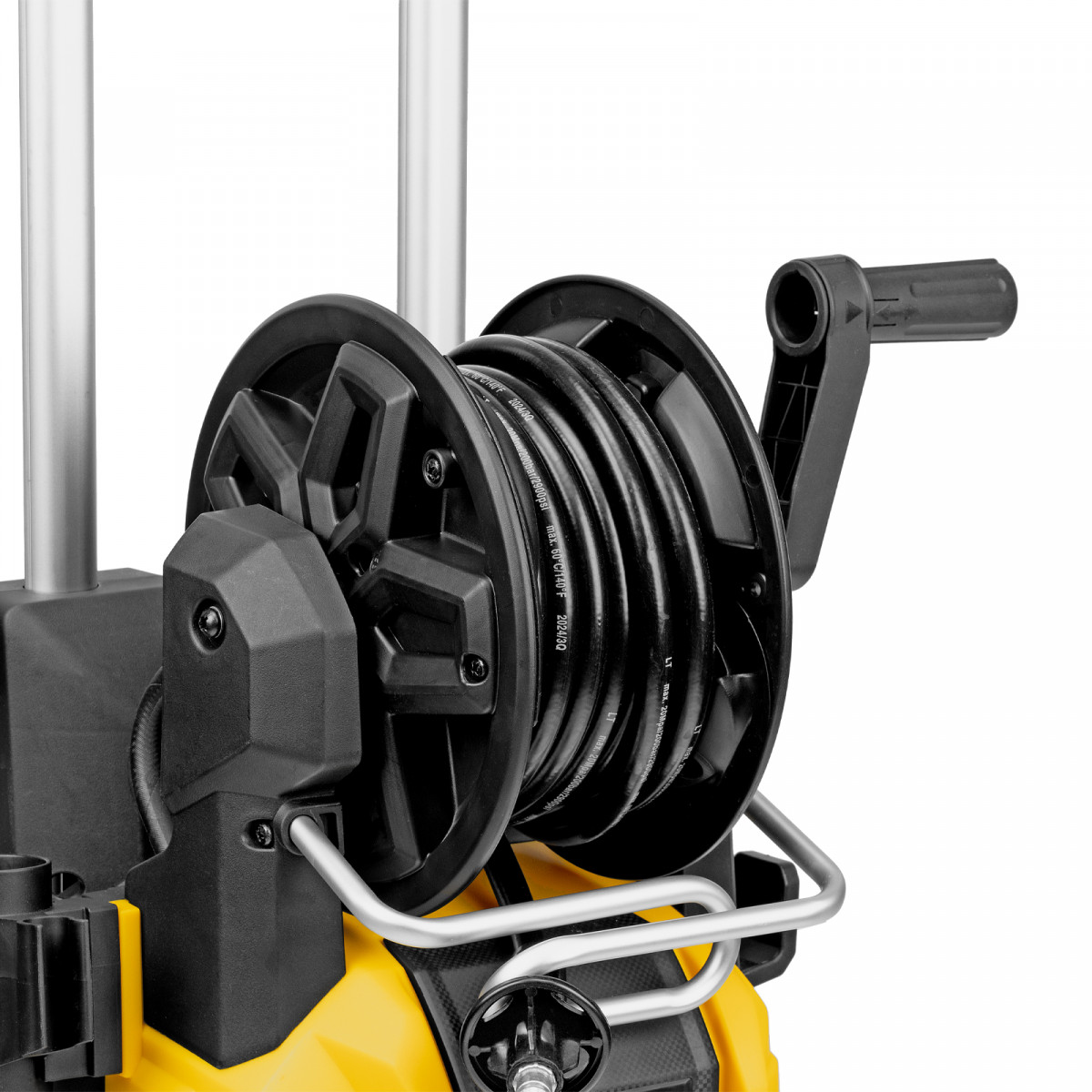 • Удобное использование — функциональный барабан подключен к магистрали высокого давления, поэтому вы можете разматывать и убирать шланг на барабан, не отсоединяя его от мойки.