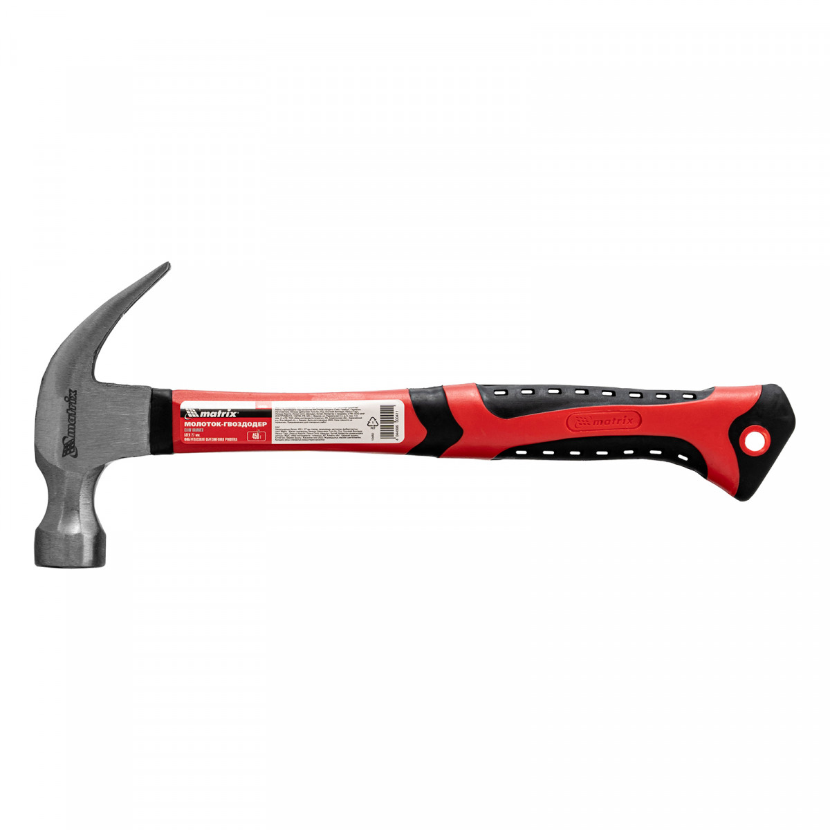 Молоток-гвоздодер, 450 г, боек 27 мм, фибергласовая обрезиненная рукоятка Matrix