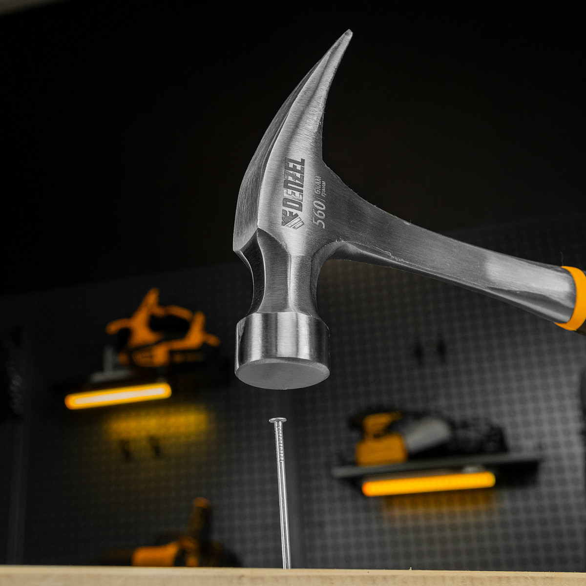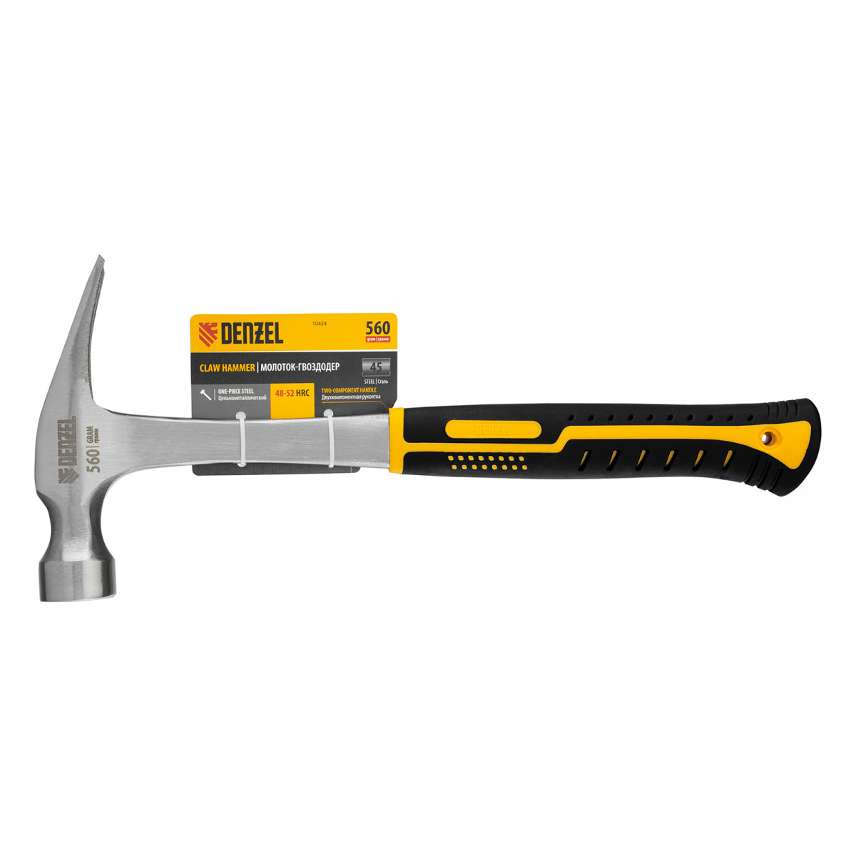 Молоток-гвоздодер 560 г, цельнометаллический, двухкомпонентная рукоятка Denzel