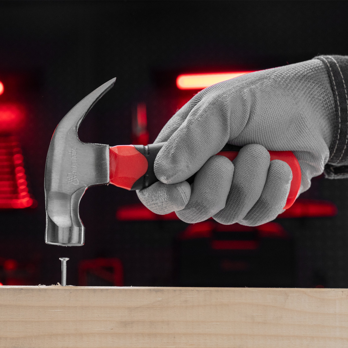 Молоток-гвоздодер мини Matrix 10443 с головкой весом 250 г, бойком с магнитом и фибергласовой двухкомпонентной рукояткой, предназначен для столярных, плотницких и отделочных работ. Благодаря компактным размерам он очень удобен в быту и в поездках. Круглый боек служит для забивания гвоздей, а плоский носок с прорезью — для их выпрямления. Магнитный фиксатор позволяет установить гвоздь в труднодоступном месте, не придерживая его рукой.