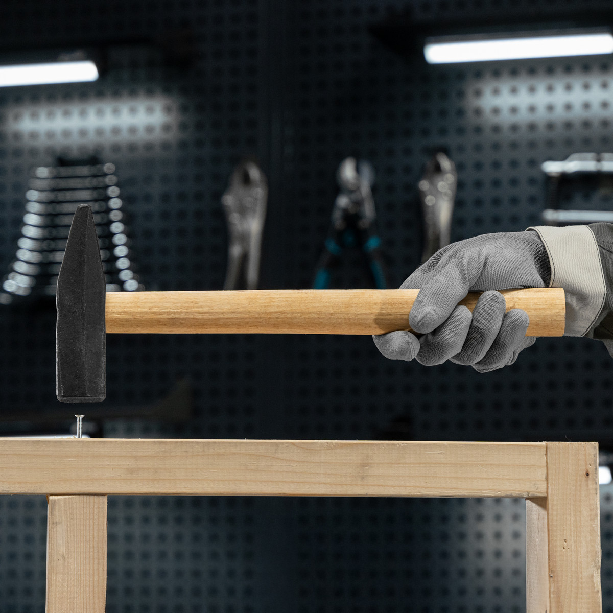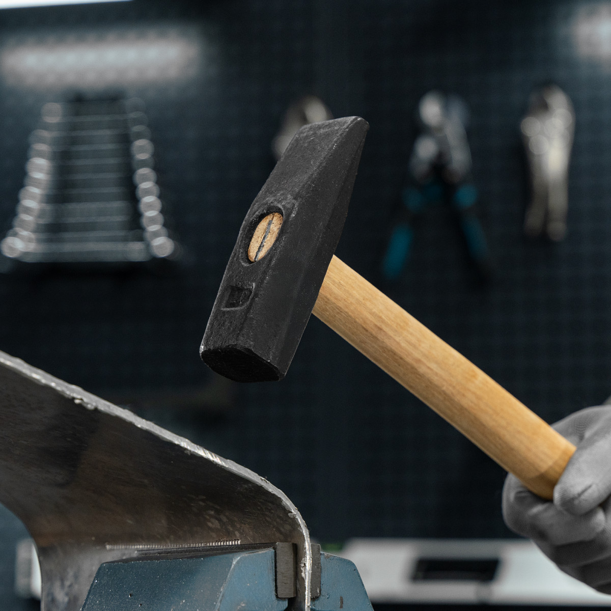 Молоток слесарный, 1000 г, квадратный боек, деревянная рукоятка