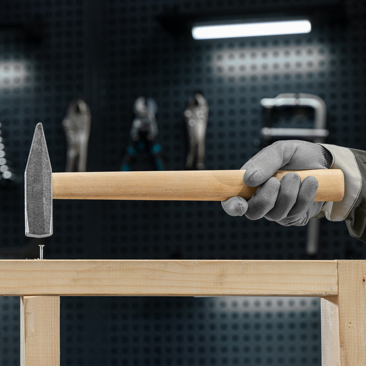 Молоток слесарный, 600 г, квадратный боек, деревянная рукоятка