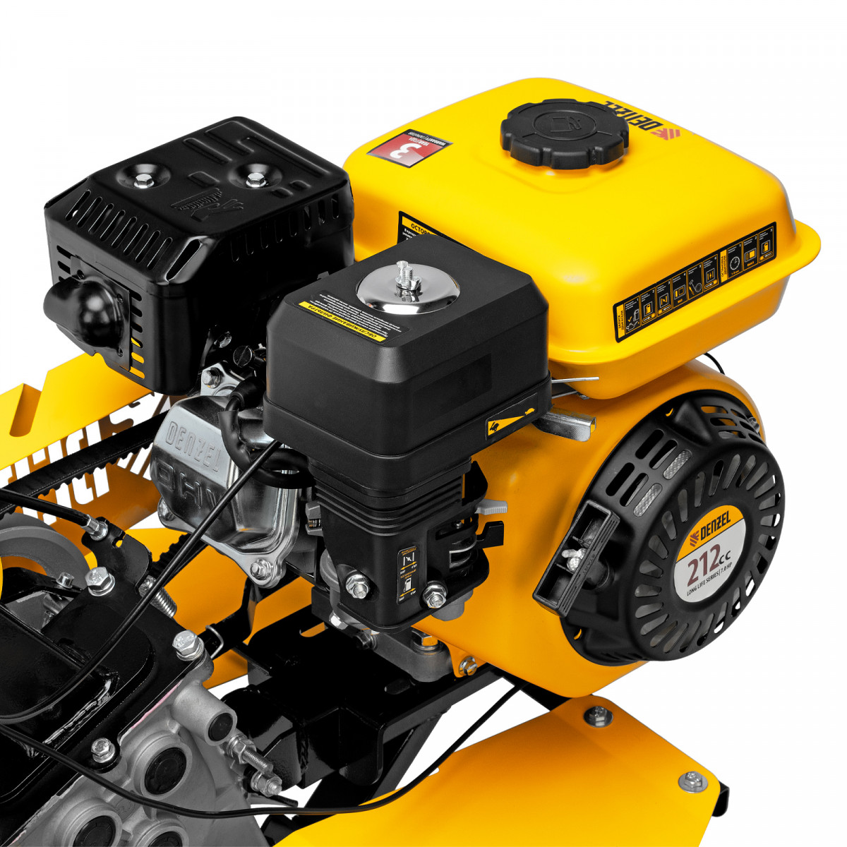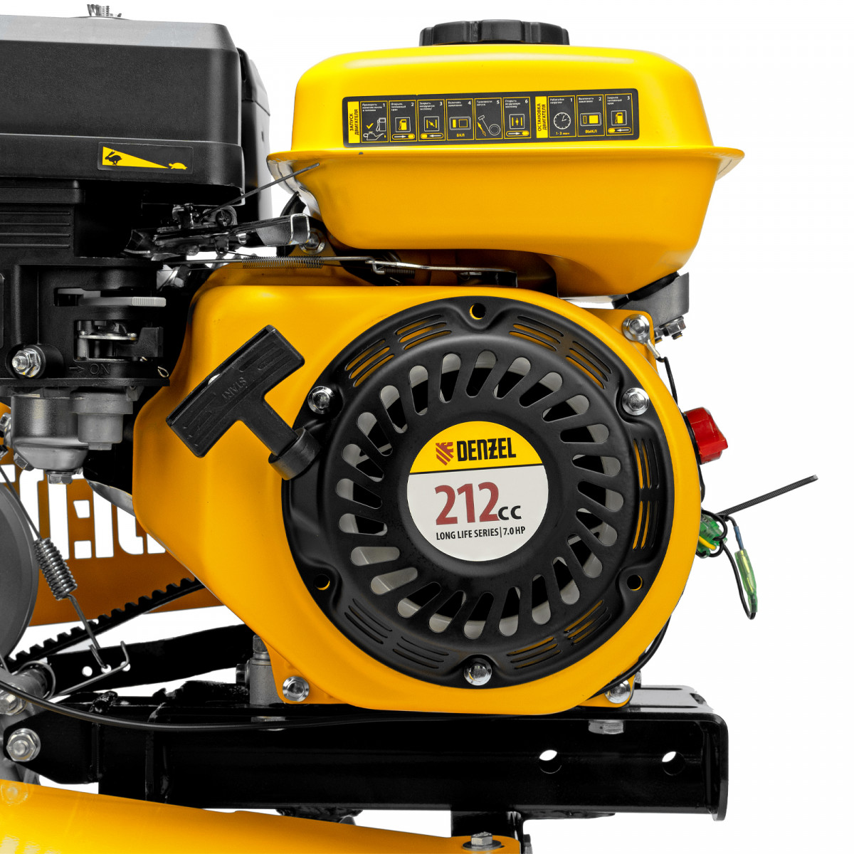 • Надежность — мощный и экономичный 4-тактный OHV-двигатель Denzel Long Life с воздушным охлаждением обеспечивает стабильную работу на протяжении длительного времени.