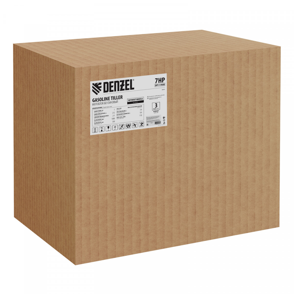 Мотоблок DPT-170SB, 7 л.с., ремен.сцеп, фрез 3х4, ШОМ, без колес, передачи 2В/1Н Denzel