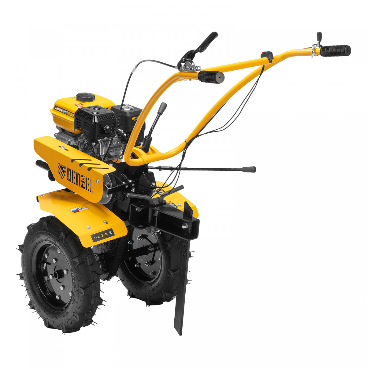 • Эффективная работа на любых типах грунта — мотоблок оснащен мощным и экономичным OHV-двигателем Denzel Long Life и стальными закаленными фрезами, не требующими заточки в течение всего срока эксплуатации.
