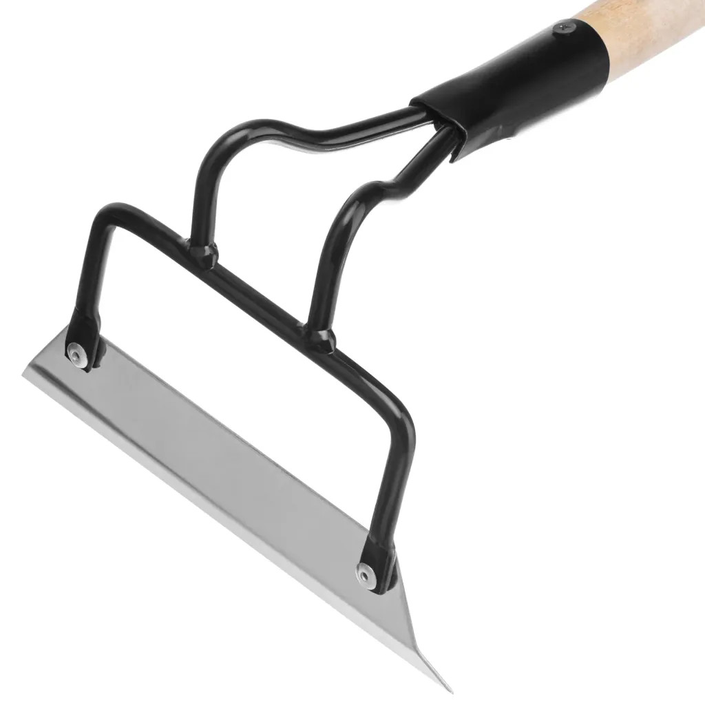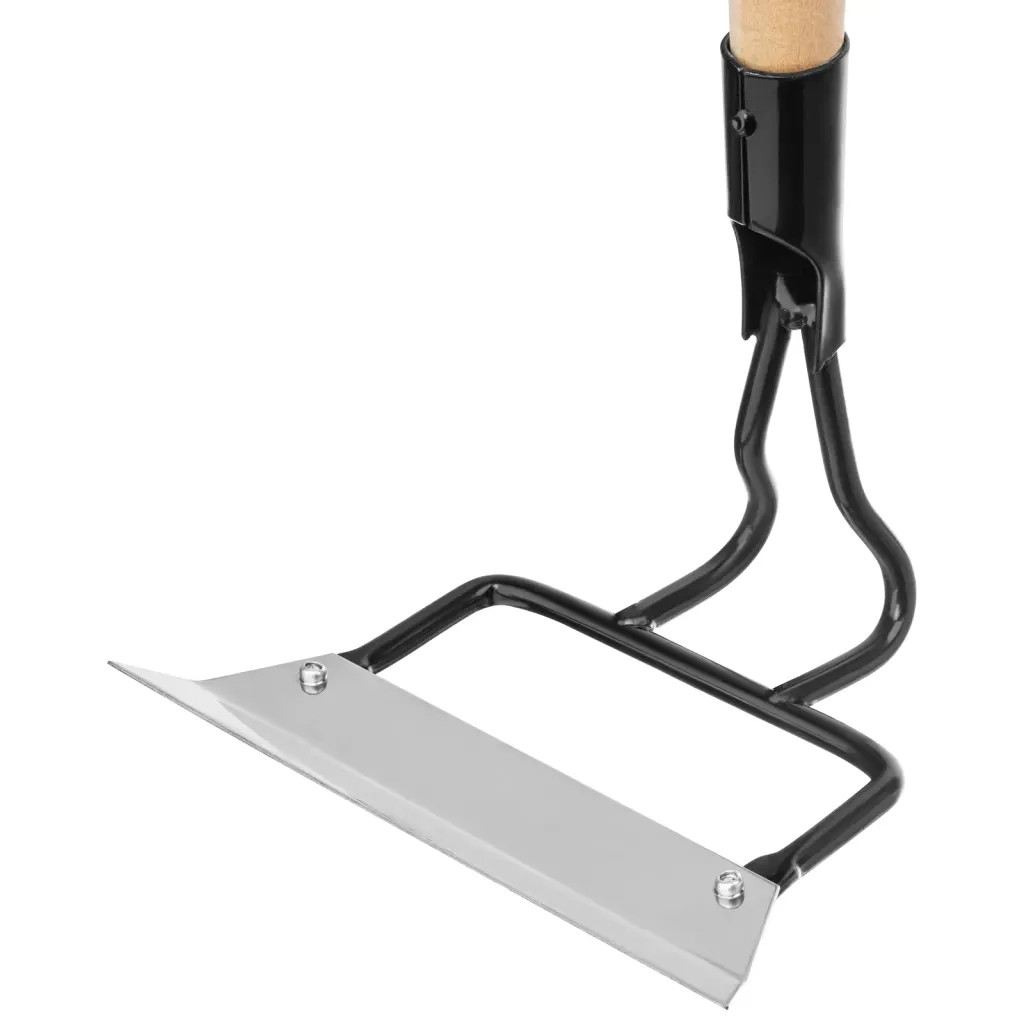 Мотыга Сибртех 62329 из нержавеющей стали, размером 200 х 50 х 1300 мм, с деревянным черенком, используется для рыхления почвы и уничтожения сорняков, а также окучивания растений. Прочный и устойчивый к коррозии инструмент прослужит долго. Черенок уменьшает нагрузку на позвоночник при длительной эксплуатации. Мотыга пригодится для ухода за садово-огородными культурами. Преимущества: - Эффективная работа — режущая кромка остро заточена, поэтому мотыга легко срезает сорняки и рыхлит даже плотную почву. - Долговечность — черенок изготовлен из древесины твердых пород, тулейка и державка покрыты порошковой эмалью для защиты от коррозии. - Прочная конструкция — полотно надежно соединено с державкой с помощью заклепок. - Комфортная эксплуатация — отшлифованный черенок удобно держать в руках.