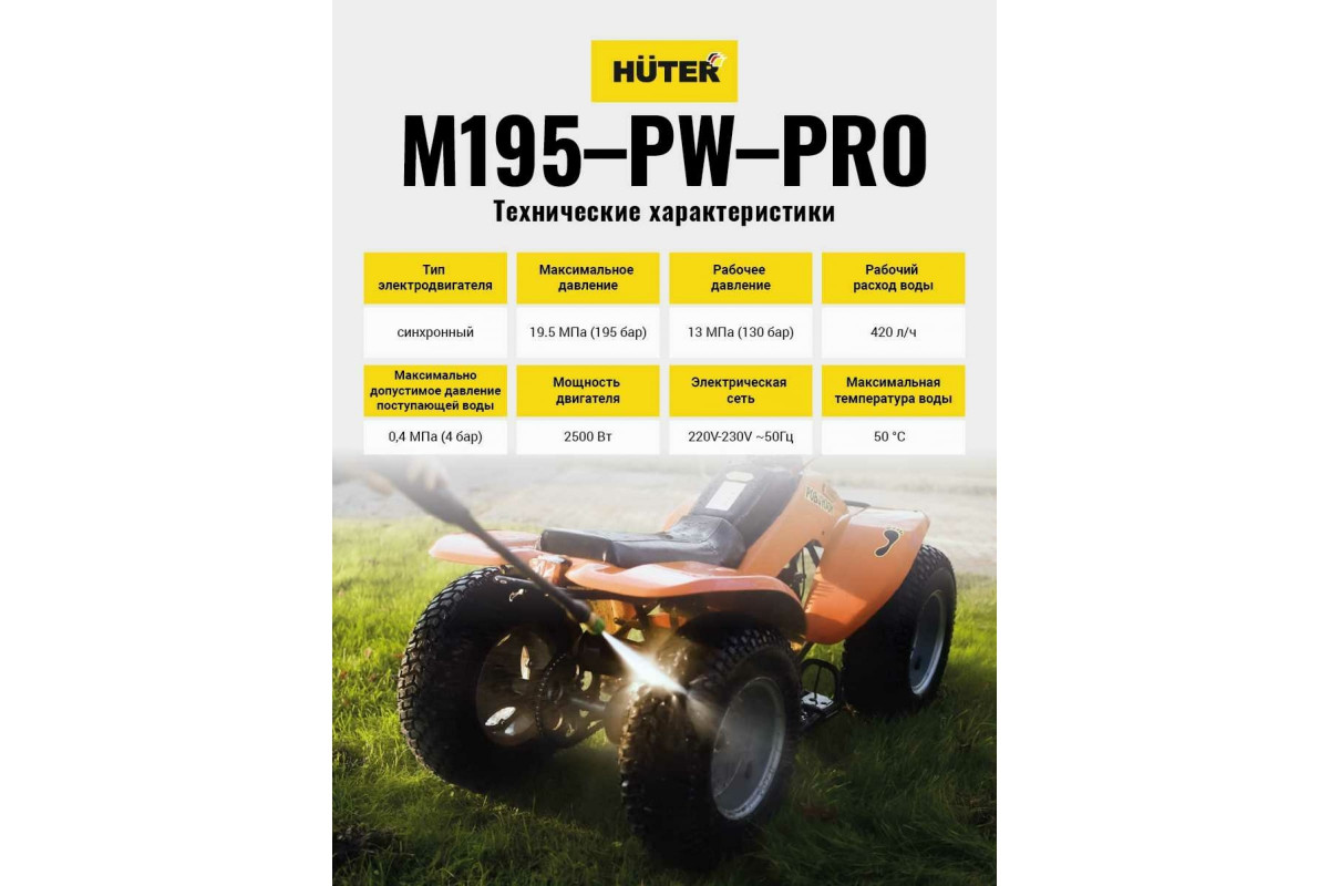 Мойка Huter M195-PW-PRO 70/8/17 высокого давления быстро и эффективно избавит от загрязнений различные транспортные средства, дома, фасады и дорожки.