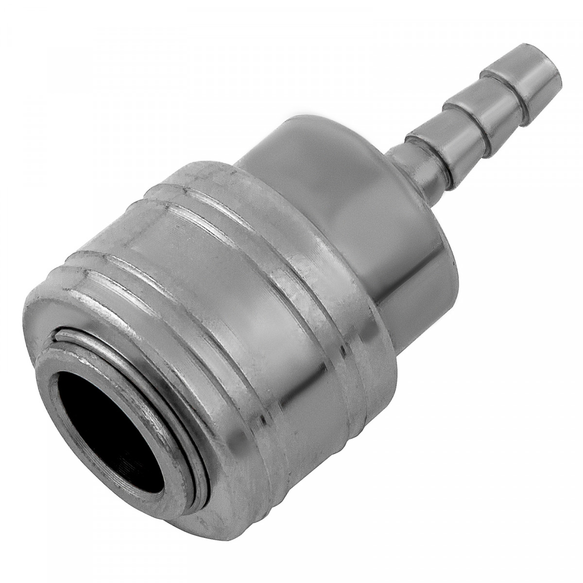 Универсальная быстросъемная муфта Stels 57052 типа «мама», со штуцером «елка» предназначена для подключения краскораспылителя, нейлера, продувочного пистолета и других пневмоинструментов к компрессору при помощи шланга диаметром 6 мм. Соединение Рапид (Евро) обеспечивает простую стыковку с инструментом, а штуцер «елочка» — со шлангом. Муфта используется при проведении строительных и ремонтных работ.