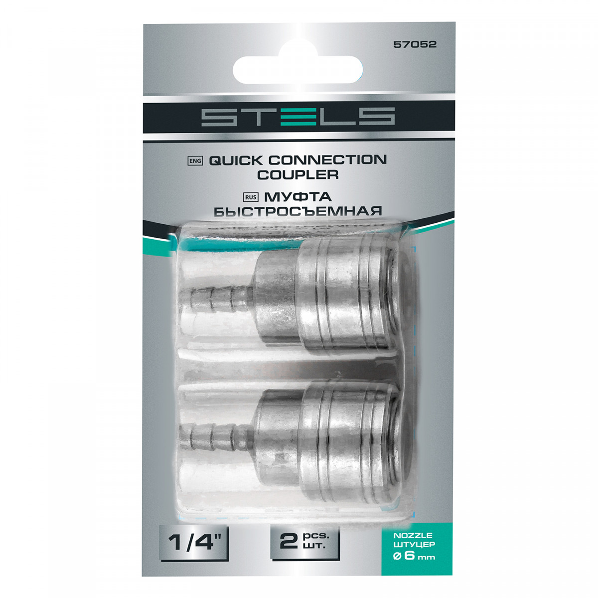 Муфта универсальная быстросъемная ("мама") 1/4, со штуцером "елка" под шланг 6 мм, 2 шт, Stels