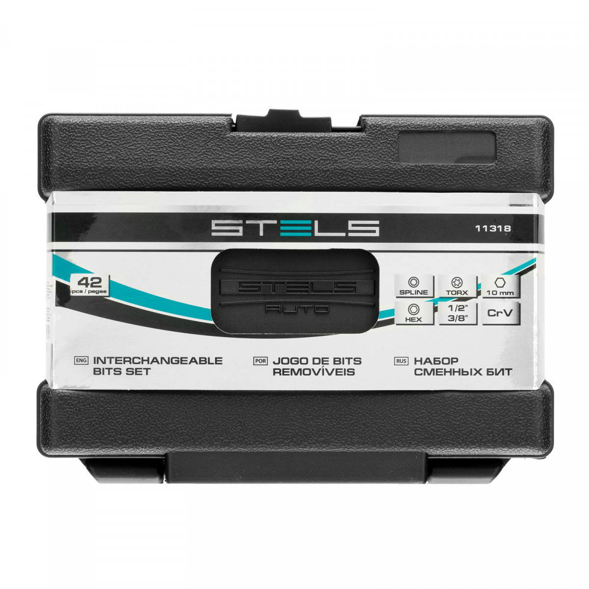 Набор Stels 11318 включает 42 предмета: биты с шестигранным хвостовиком 3/8 дюйма, из стали CrV, предназначенные для крепления 6-гранных саморезов, винтов, шурупов HEX, «звезд» TORX и 12-лучевых SPLINE, а также 2 переходника 1/2-3/8 дюйма и 3/8-3/8 дюйма. Биты устанавливают на ключ-трещотку, пневмотрещотку или пневматический гайковерт. Комплект рекомендован для профессионального применения в автомастерских и на производствах автомобилей.