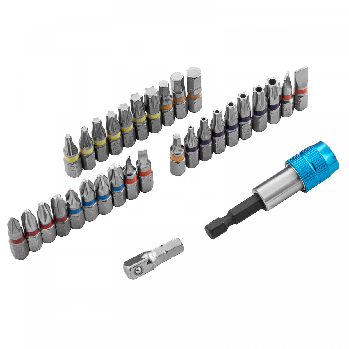 Набор бит с магнитным адаптером Gross 11363 из стали S2, в пластиковый кейсе, включает в себя 32 предмета для монтажа и демонтажа резьбовых соединений. Набор подойдет для выполнения ремонтных, монтажных и слесарных работ, в том числе для сборки мебели, бытовых электроприборов, самокатов и велосипедов. В комплект входят биты самых актуальных размеров, переходник с шестигранника на квадрат 1/4 дюйма и магнитный адаптер для бит.