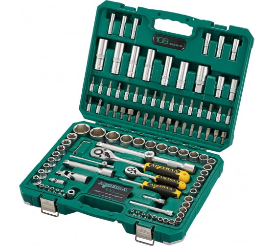 Широчайший подбор головок, в том числе глубоких, а также бит и бит-вставок позволяет работать практически со всем распространенным крепежом, который можно встретить в автомобиле и в средствах малой