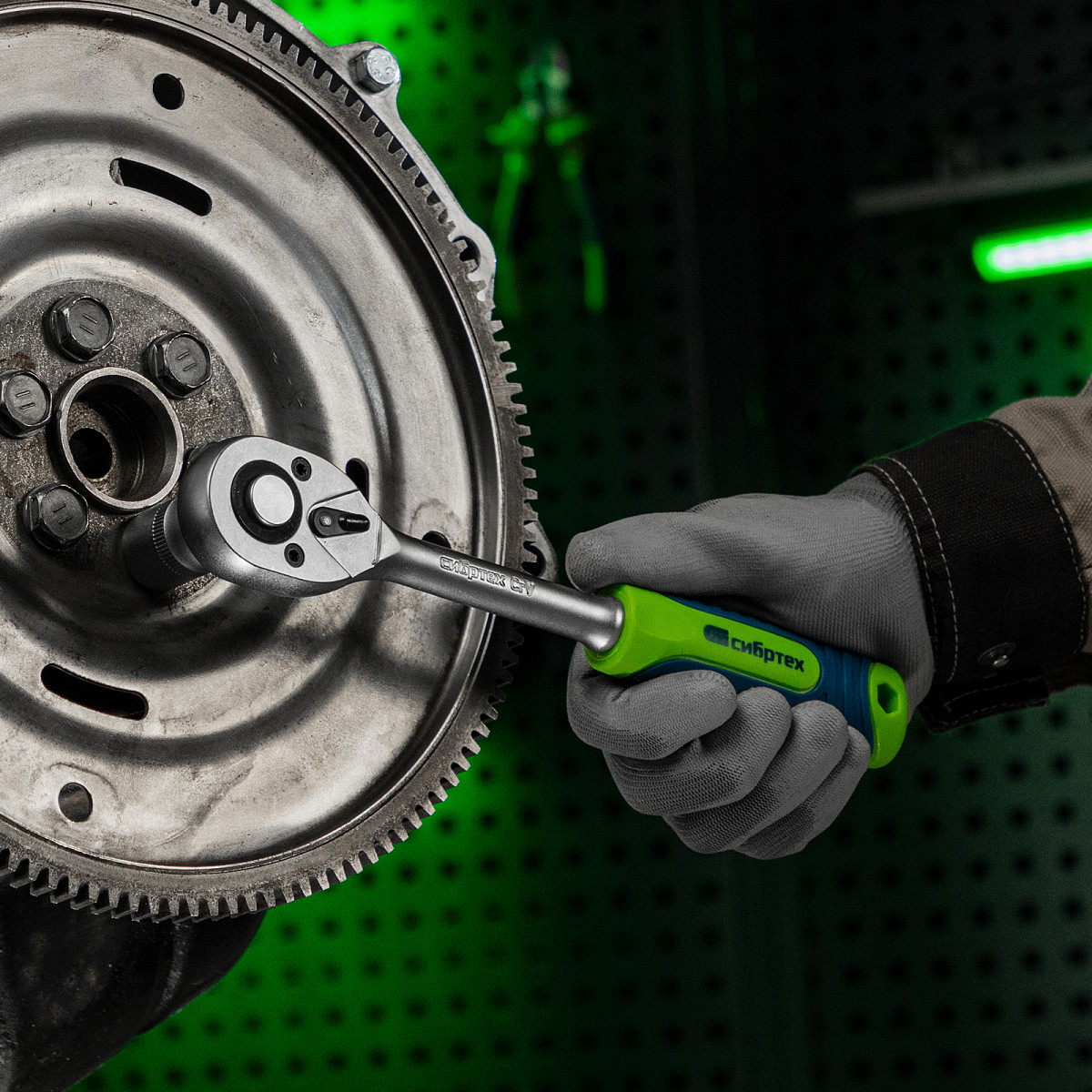 - Комфортная и эффективная работа — ключи-трещотки с 45 зубьями оснащены механизмом быстрого сброса, переключателем реверса с металлическим флажком и двухкомпонентной рукояткой.