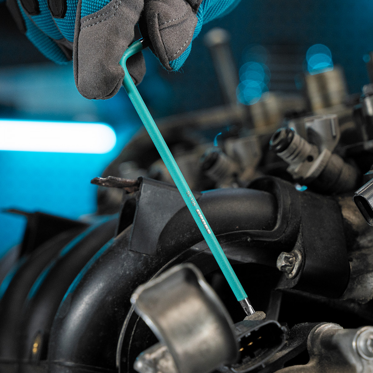 • Уверенный контакт с крепежом — в наконечник каждого ключа встроен магнит.