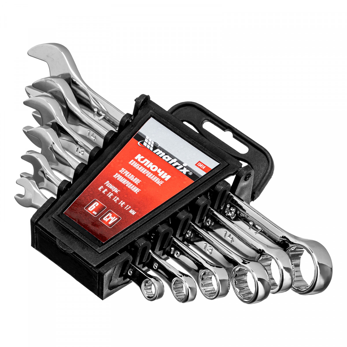 Набор ключей комбинированных, 6-17 мм, 6 шт, CrV, полированный хром Matrix
