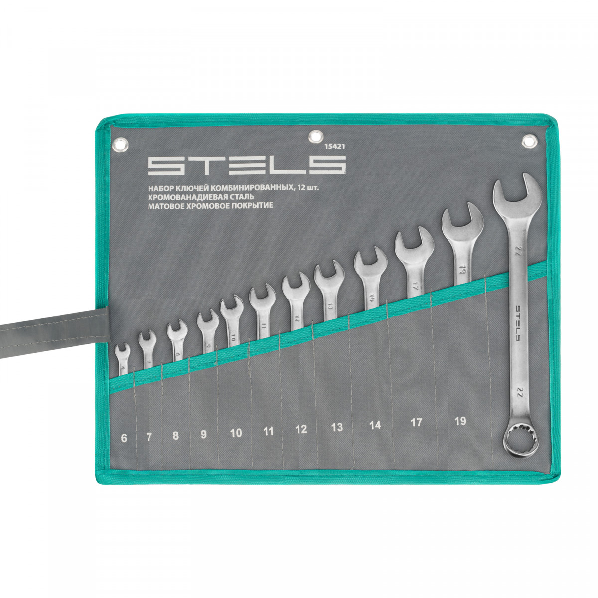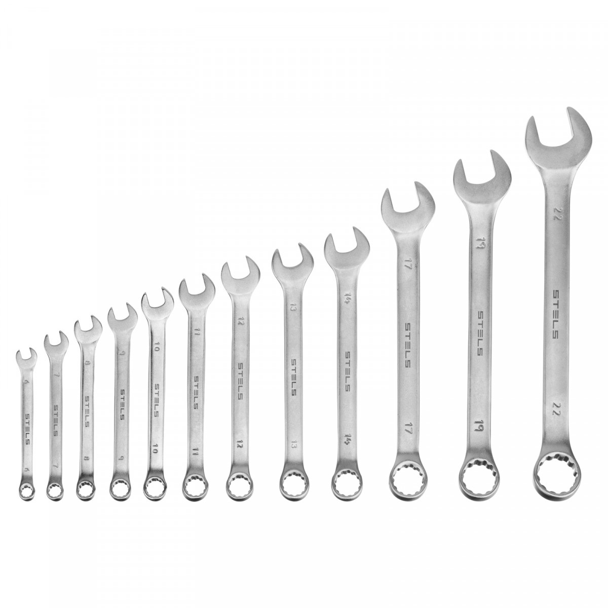 Набор ключей комбинированных 6-22 мм, 12 шт, CrV, матовый хром Stels