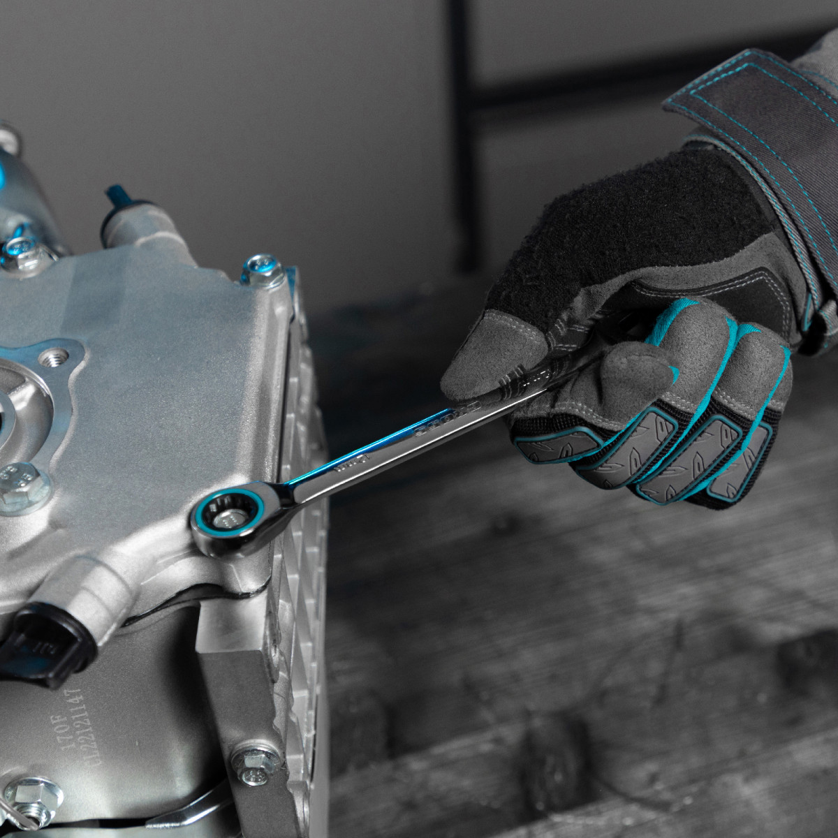 • Высокий ресурс — твердость материала трещотки составляет 43-47 HRC, поэтому она устойчива к интенсивным нагрузкам.