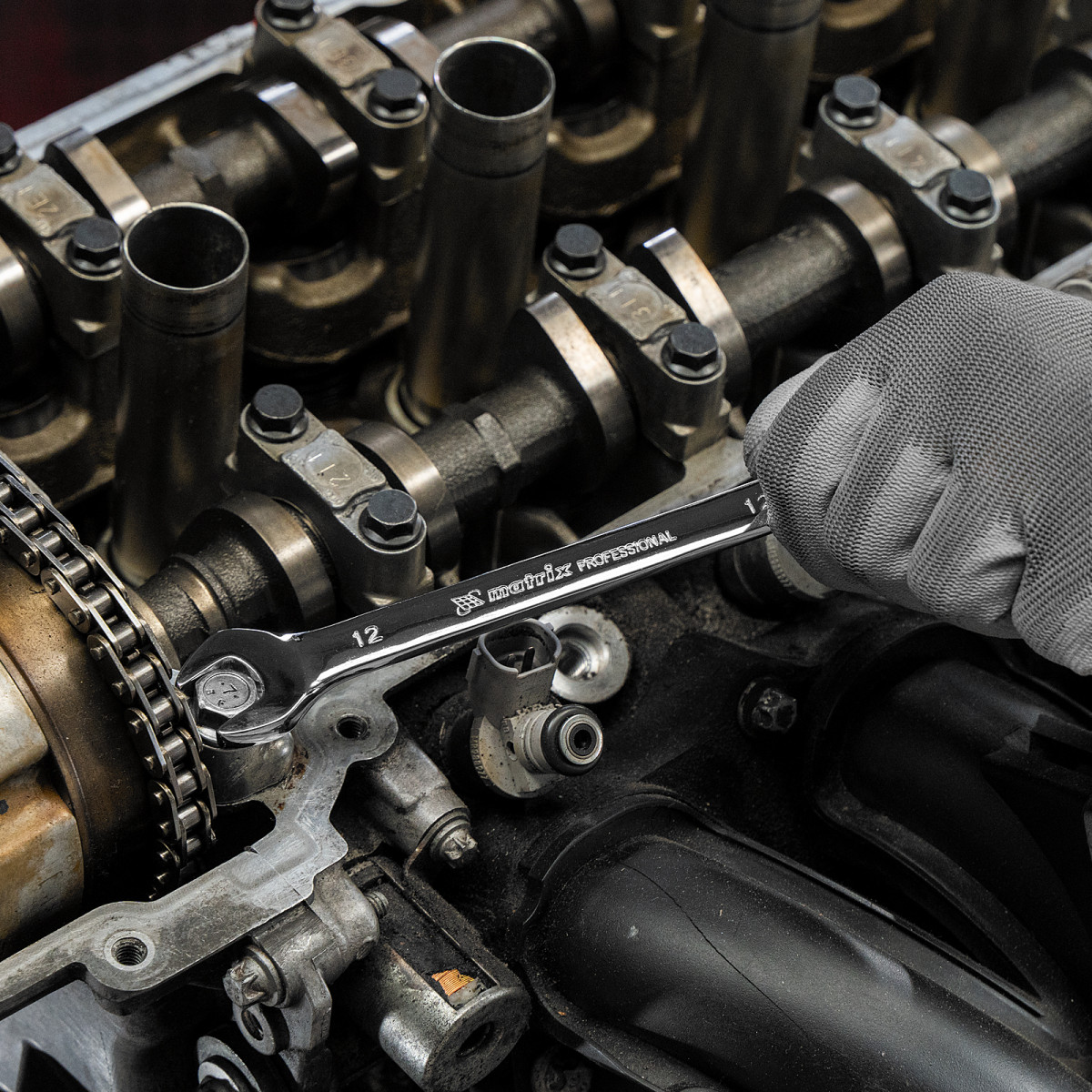 • Эффективная работа — 12-гранный профиль накидной части ключа плотно охватывает поверхность крепежа, предотвращая деформацию его граней.