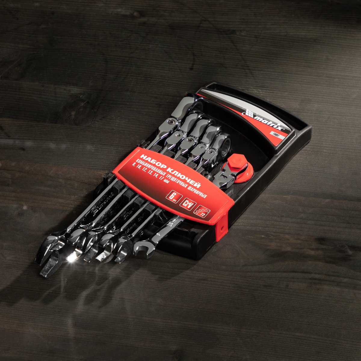 Набор ключей комбинированных, трещеточных шарнирных 6 шт Matrix