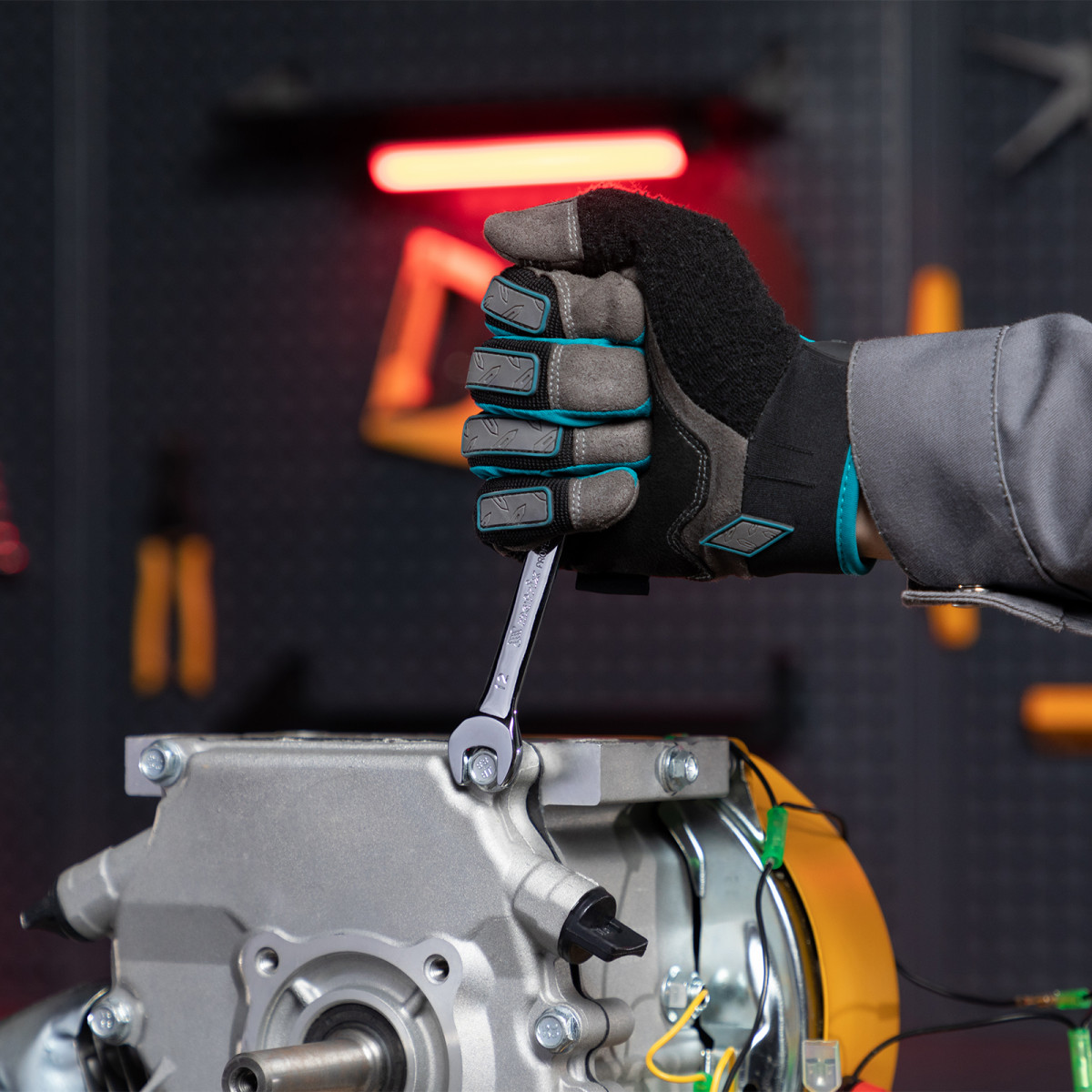 • Аккуратная работа — накидные части с 12-гранным профилем плотно охватывают головку крепежа, что снижает риск повреждения ее граней.