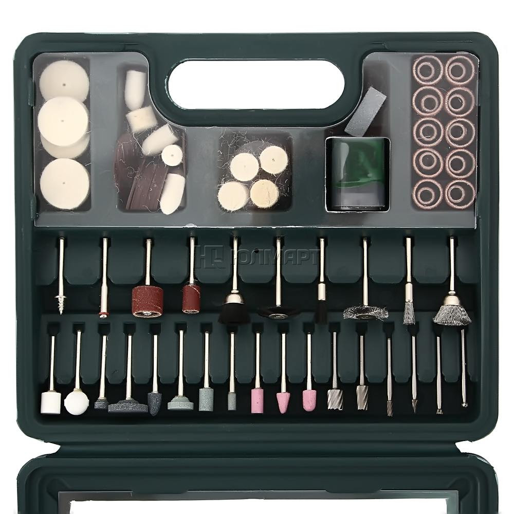 Состав набора: - шарошки по металлу; - шарошки по камню из оксида алюминия; - мини корщетки-насадки из стальной волнистой проволоки (типы "колесо", "венчик", "чашка"); - мини корщетки-насадки нейлоновые (типы "колесо", "венчик", "чашка"); - держатели для шлифовальных и отрезных мини-кругов; - держатель для фетровых кругов; - фетровые круги; - шлифовальные мини-круги диаметр 32мм; - отрезные мини-круги диаметр 24мм; - паста полировочная; - шлифовальные кольца. Тип поставки : в пластиковом чемоданчике