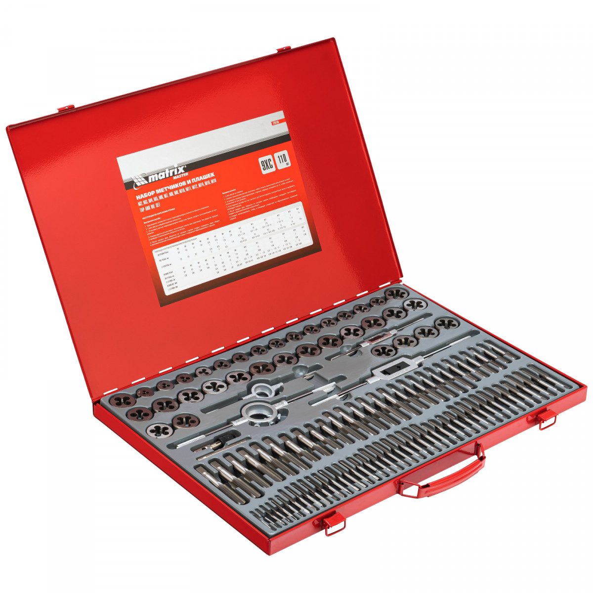 Набор метчиков и плашек М2-М18, 110 шт, металлический кейс Matrix