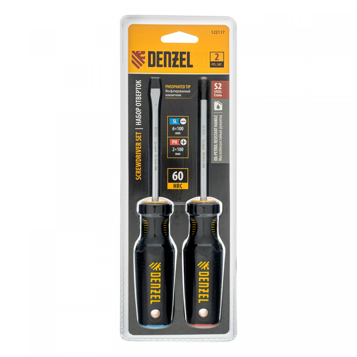 Набор отверток, 2 шт., PH+SL, S2, 3к рукоятка Denzel