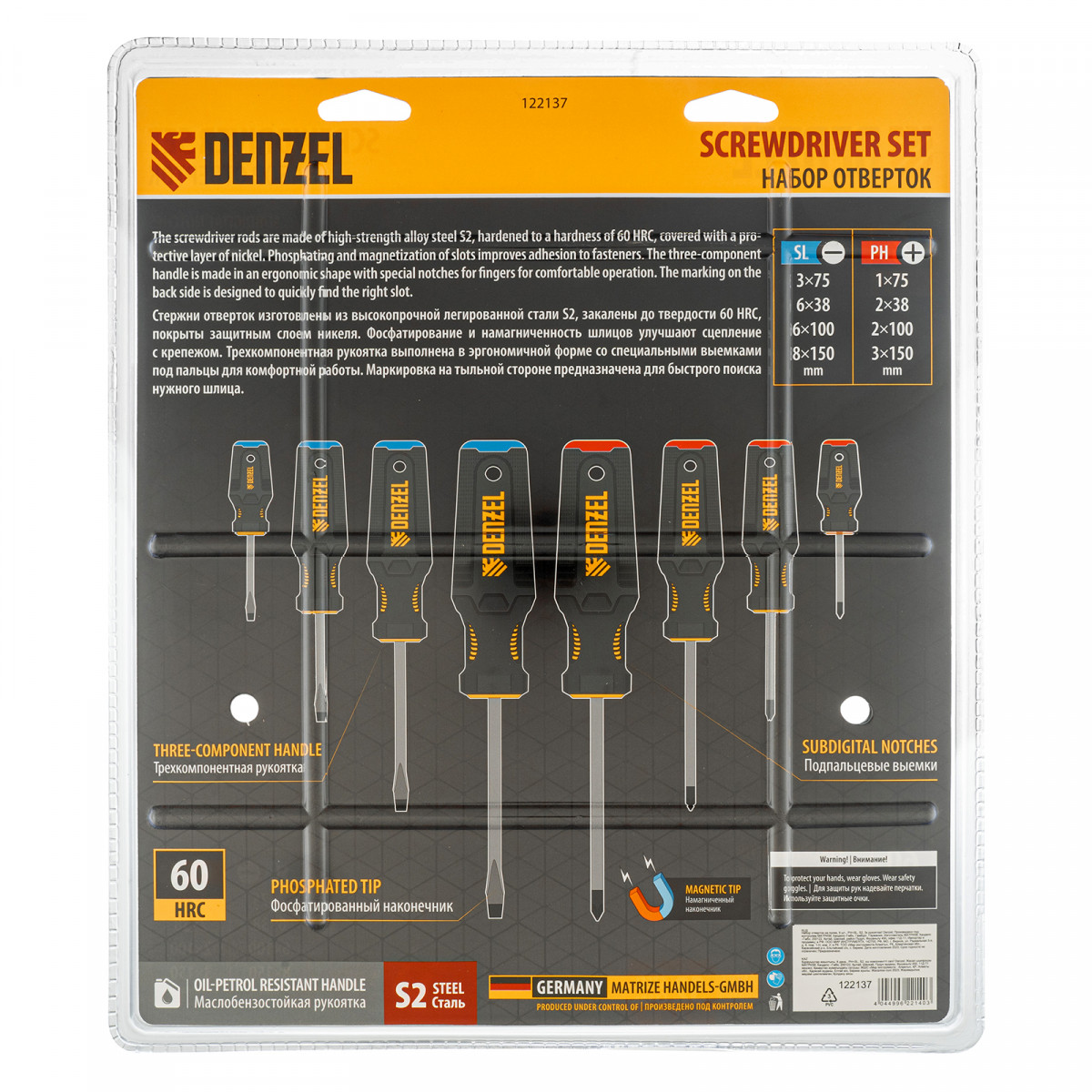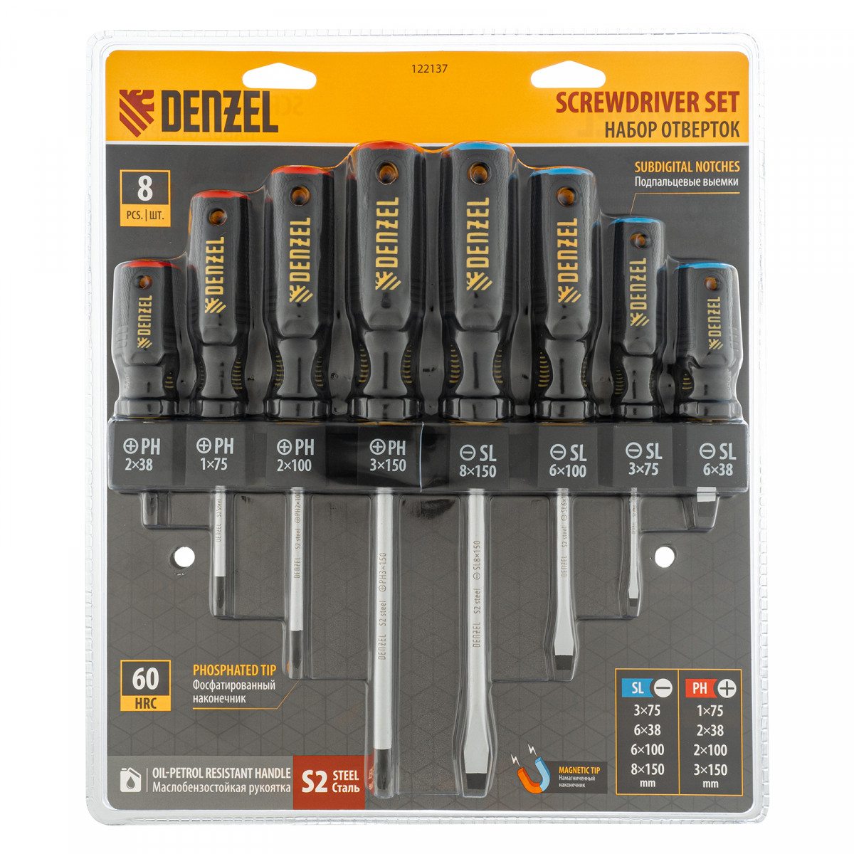Набор отверток на полке, 8 шт., PH+SL, S2, 3к рукоятка Denzel